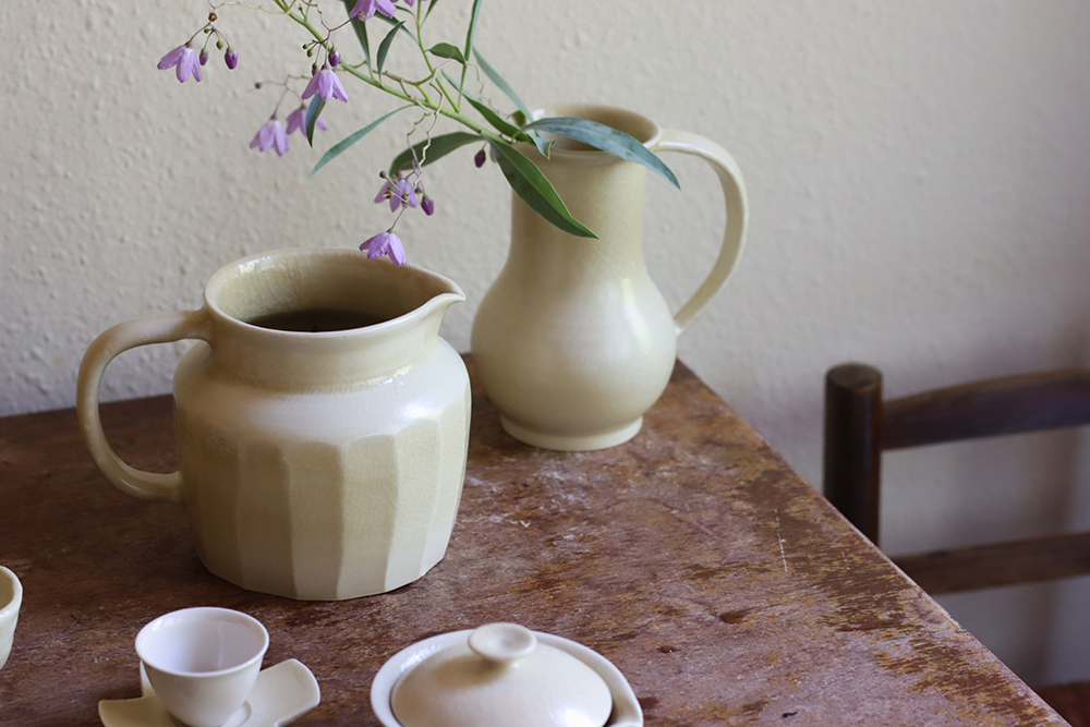 這次,我們邀請陶作家白郁民制作一系列作品:有著古樸溫暖氣質的陶壺、碗、高腳杯與蓋碗,