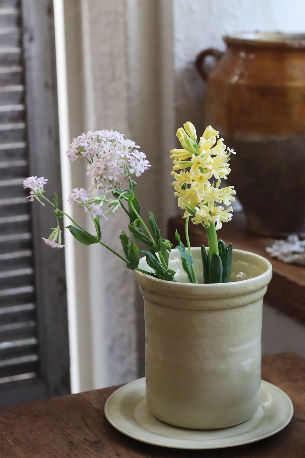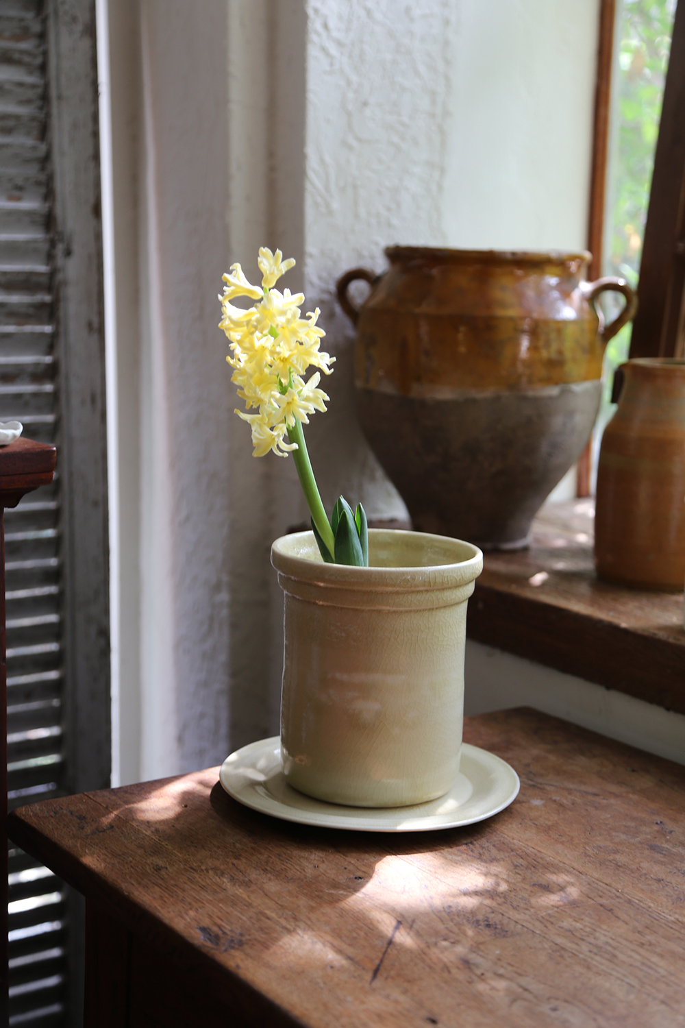 特別鍾愛18至19世紀法國南部的陶器,那些帶著古樸與純粹釉色的器皿,在陽光下泛著溫暖的光澤,彷彿凝結了時光的溫度。