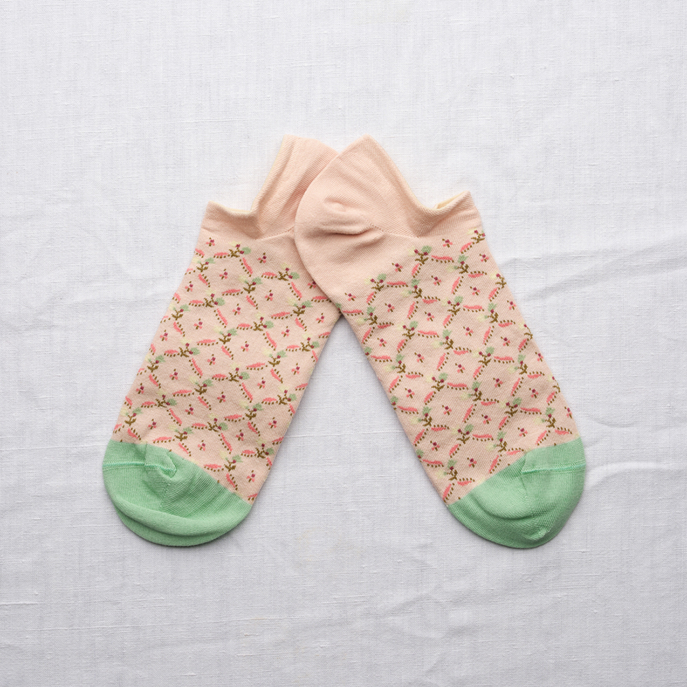 在義大利製布紡紗,全程在法國設計以及法國和葡萄牙生產的每一雙襪子。