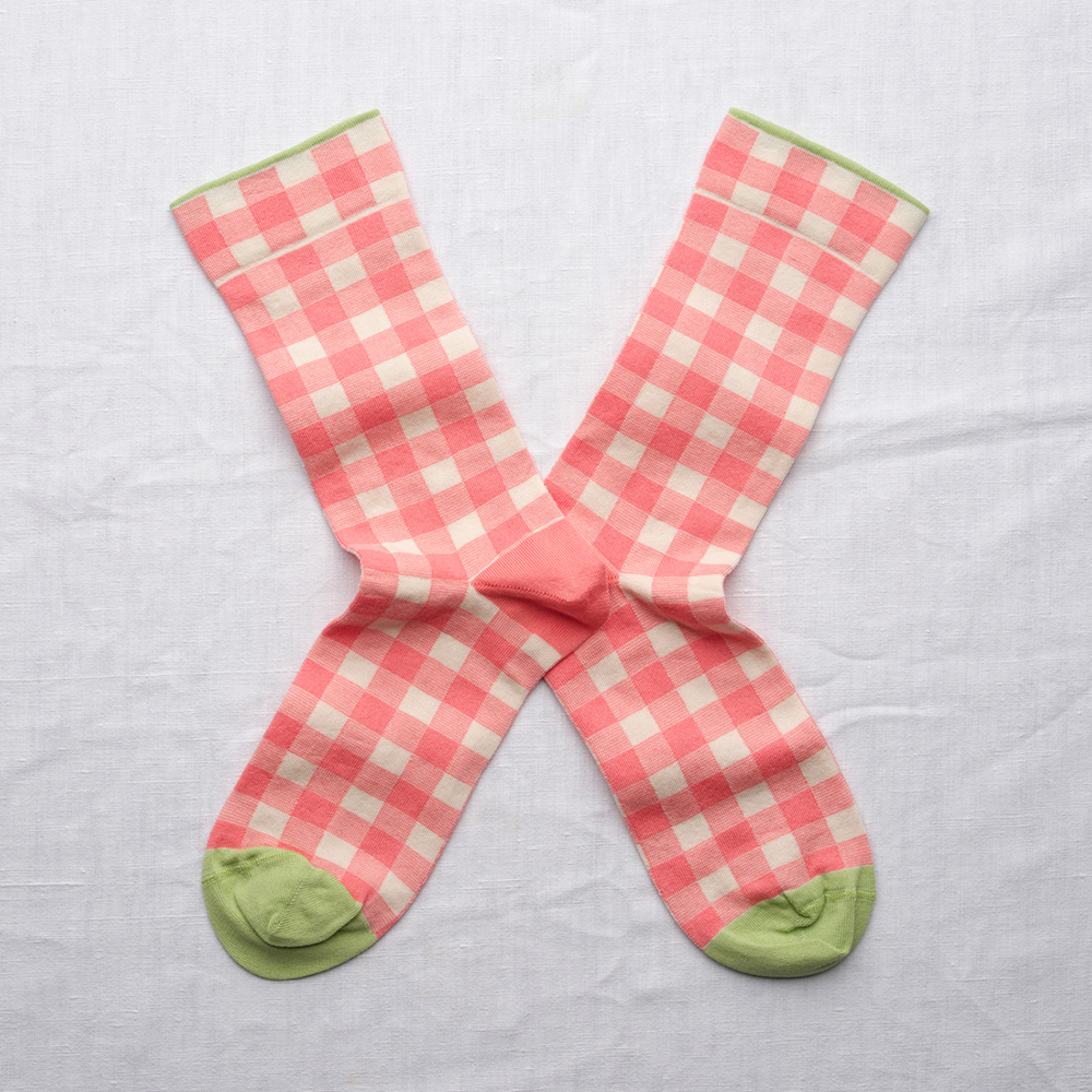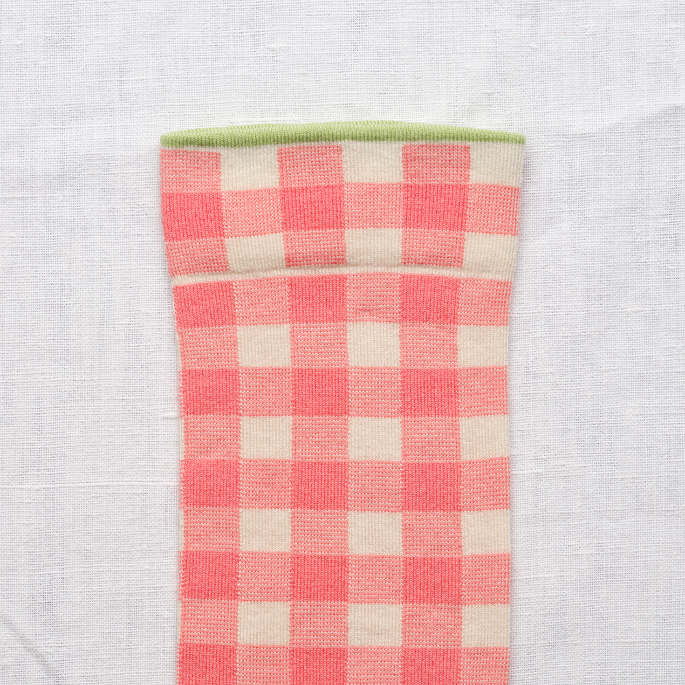 法國襪-粉紅格紋