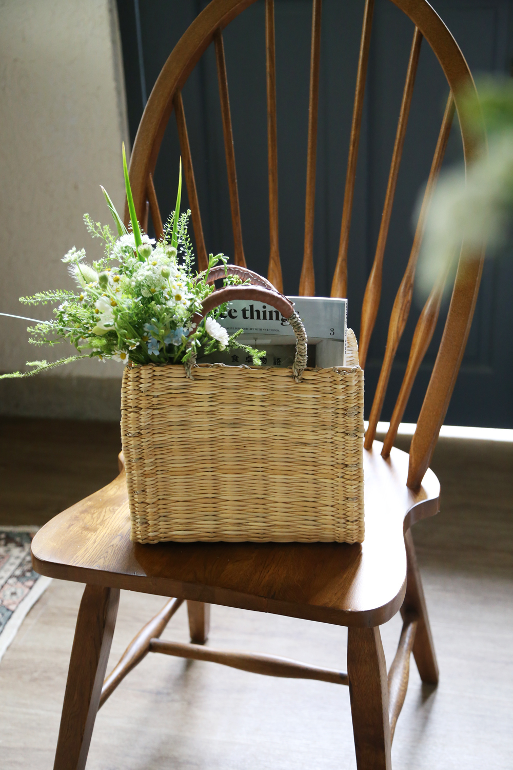 尺寸:寬29cm *高24cm 底寬12cm 含提把總長34cm (手編織商品,尺寸稍有差異)