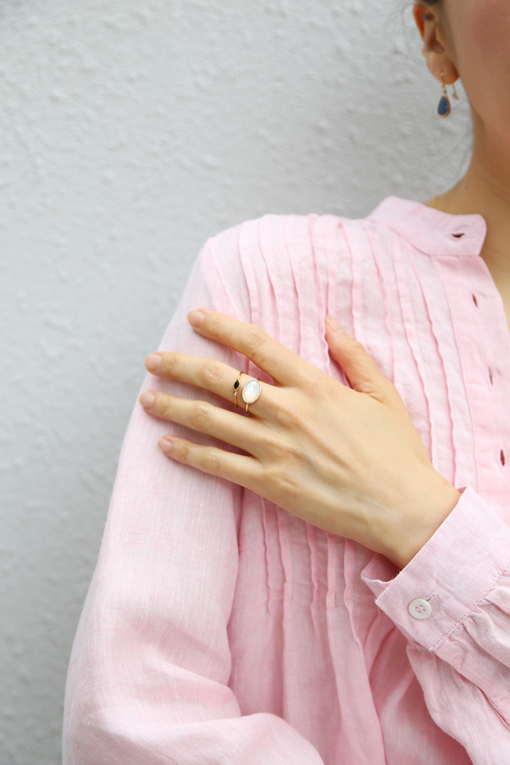 以優雅,感性和細緻,結合古典與現代,以黃銅,天然月光石、青金石、珍珠母貝、翡翠、碧璽、石英、黃玉、瑪瑙、葡萄石、東陵石等寶石的結合