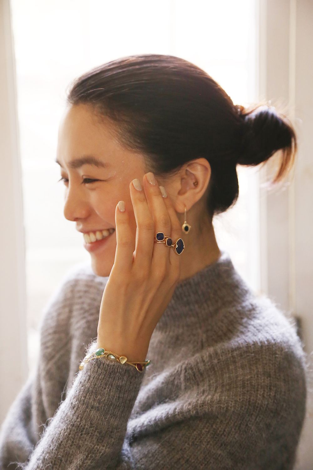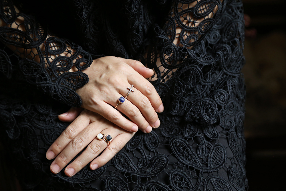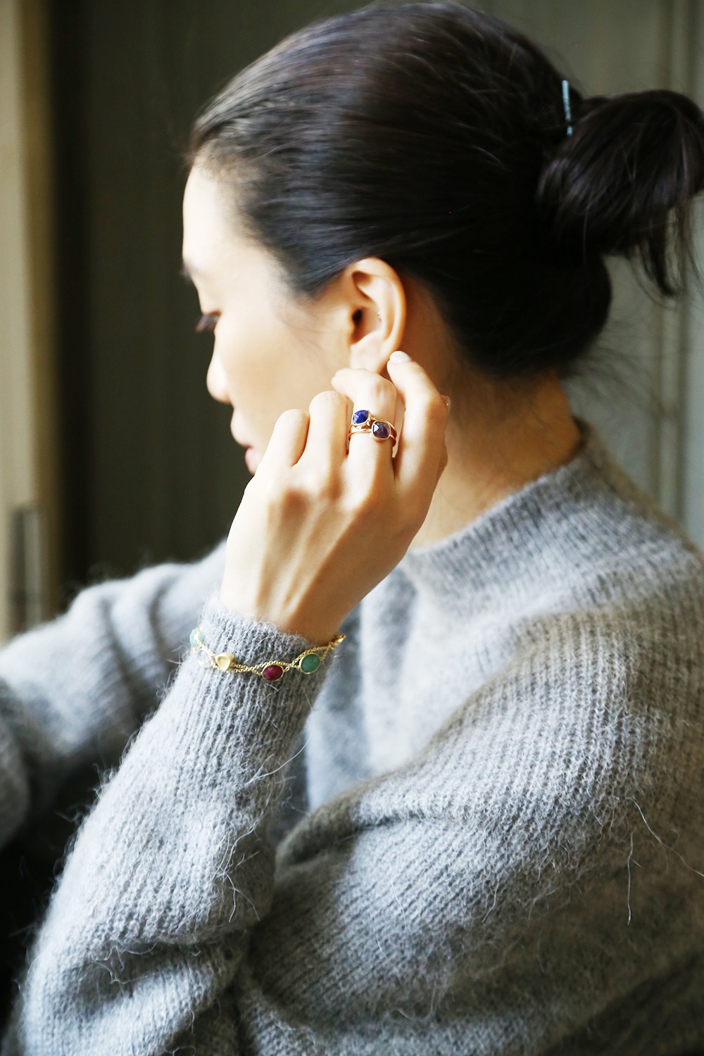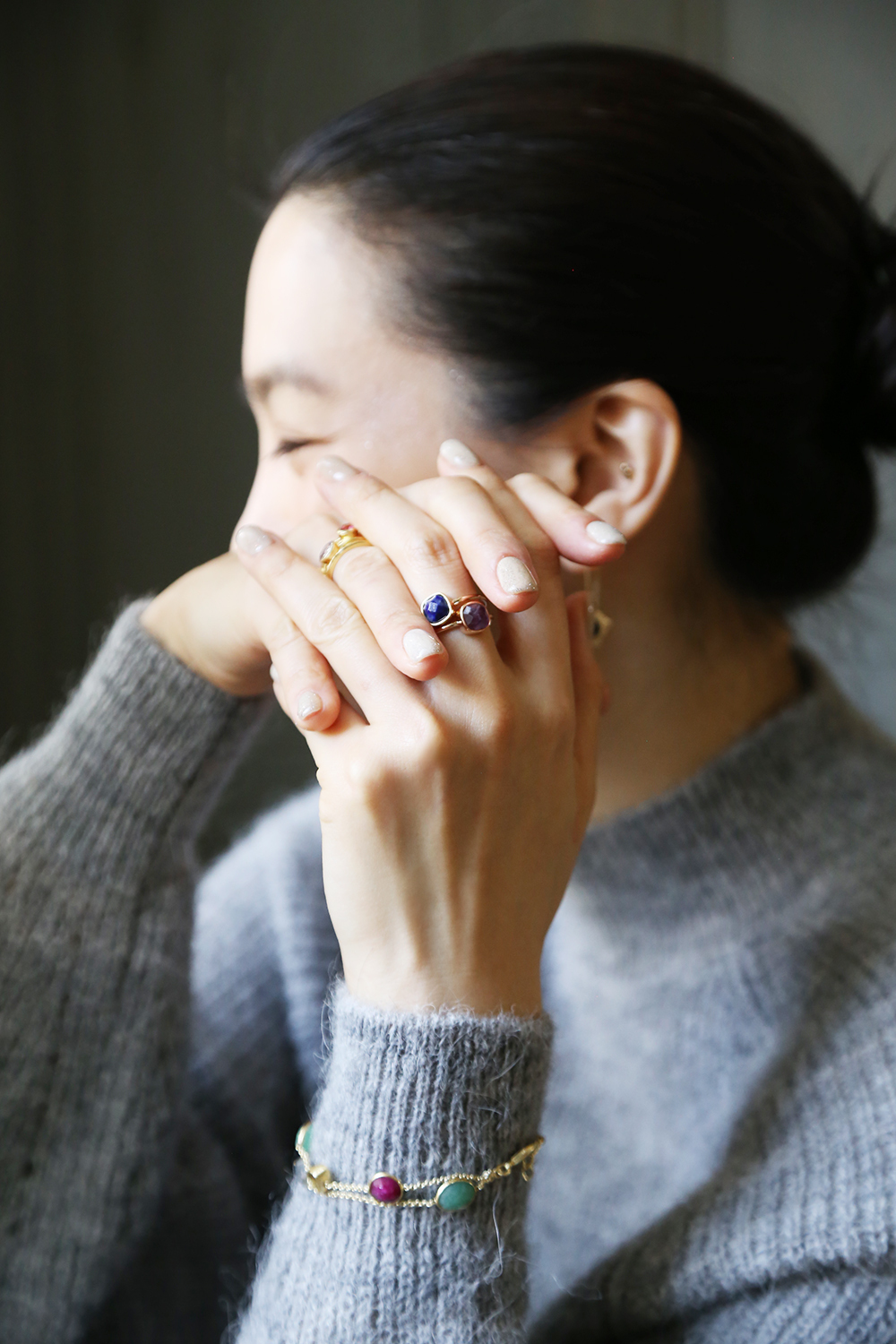 以優雅,感性和細緻,結合古典與現代,以黃銅,天然月光石、青金石、珍珠母貝、翡翠、碧璽、石英、黃玉、瑪瑙、葡萄石、東陵石等寶石的結合