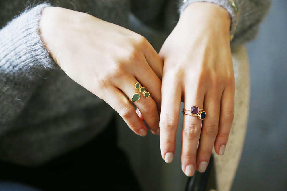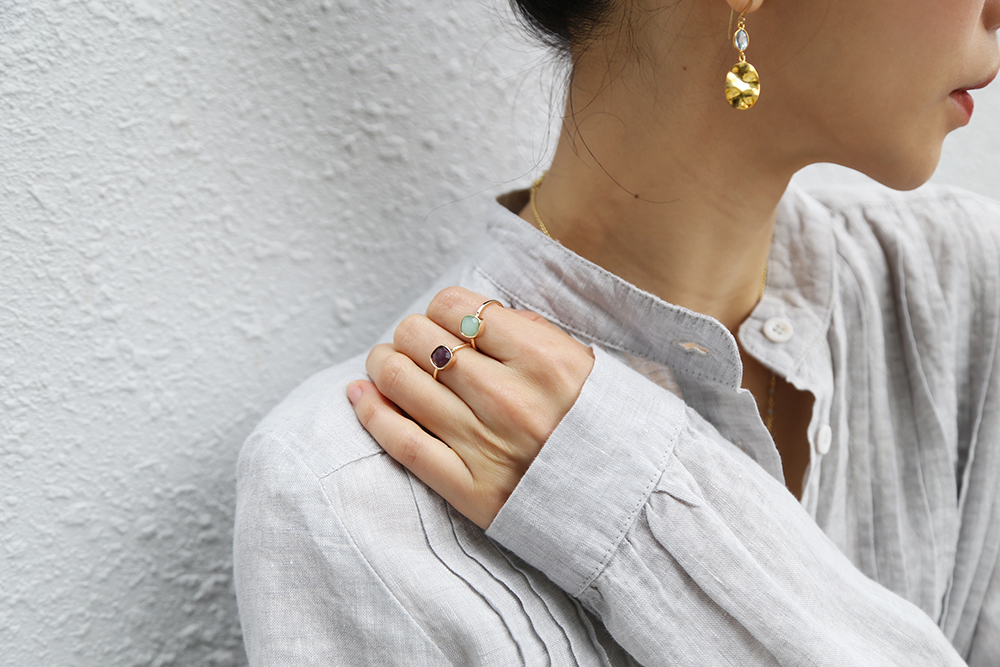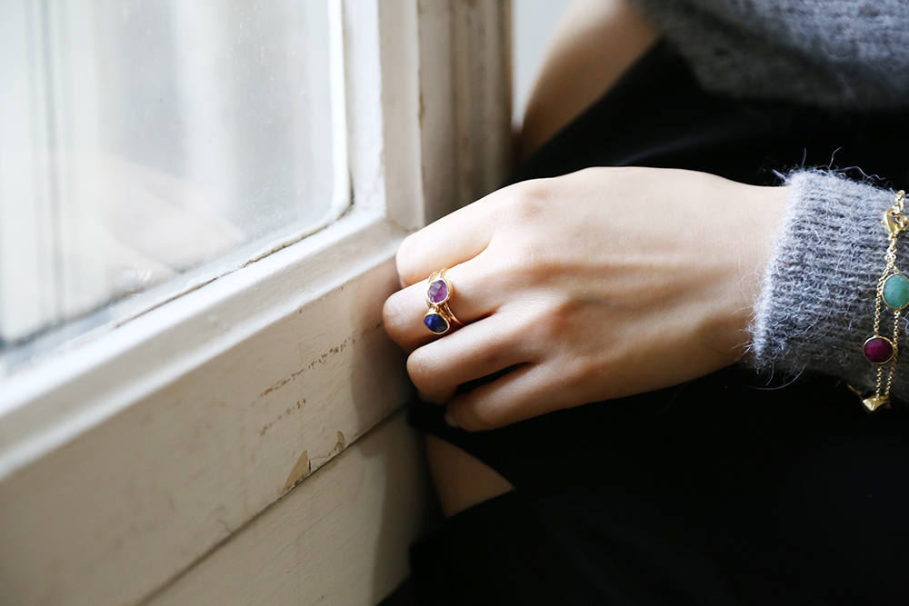 以優雅,感性和細緻,結合古典與現代,以黃銅,天然月光石、青金石、珍珠母貝、翡翠、碧璽、石英、黃玉、瑪瑙、葡萄石、東陵石等寶石的結合