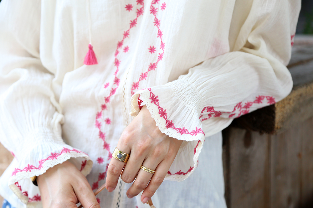 以優雅,感性和細緻,結合古典與現代,以黃銅,天然月光石、青金石、珍珠母貝、翡翠、碧璽、石英、黃玉、瑪瑙、葡萄石、東陵石等寶石的結合