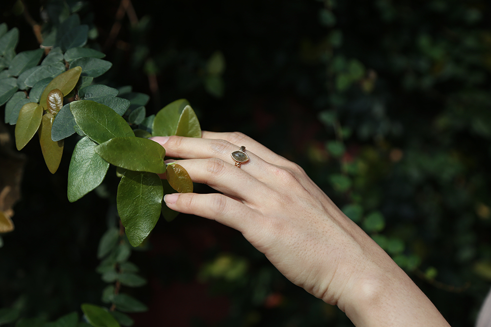 以優雅,感性和細緻,結合古典與現代,以黃銅,天然月光石、青金石、珍珠母貝、翡翠、碧璽、石英、黃玉、瑪瑙、葡萄石、東陵石等寶石的結合
