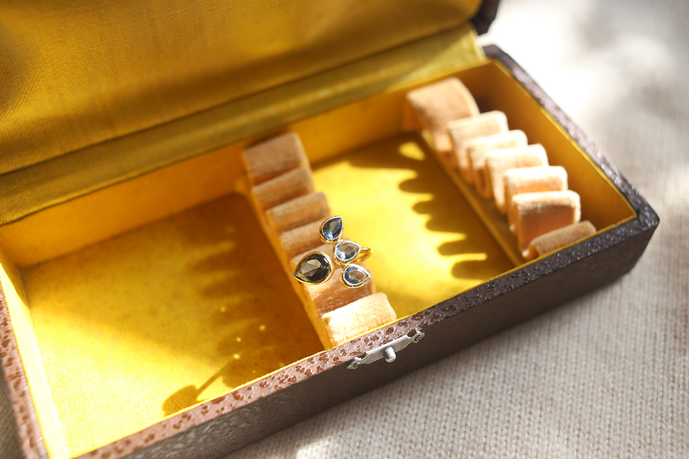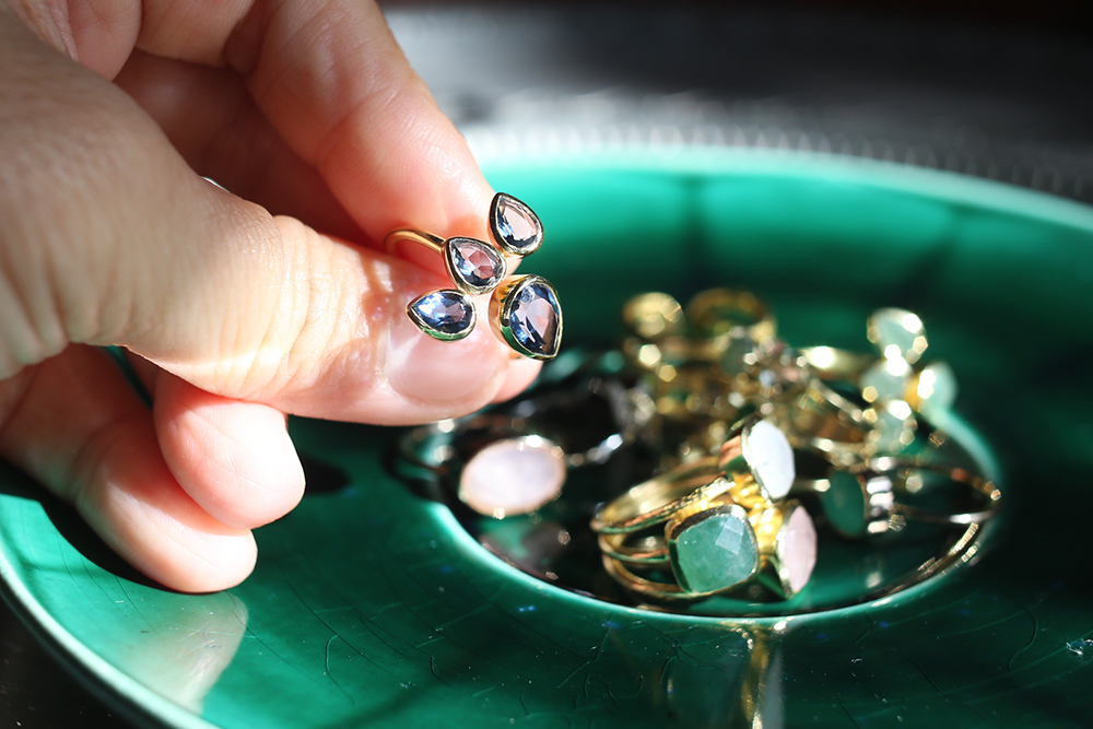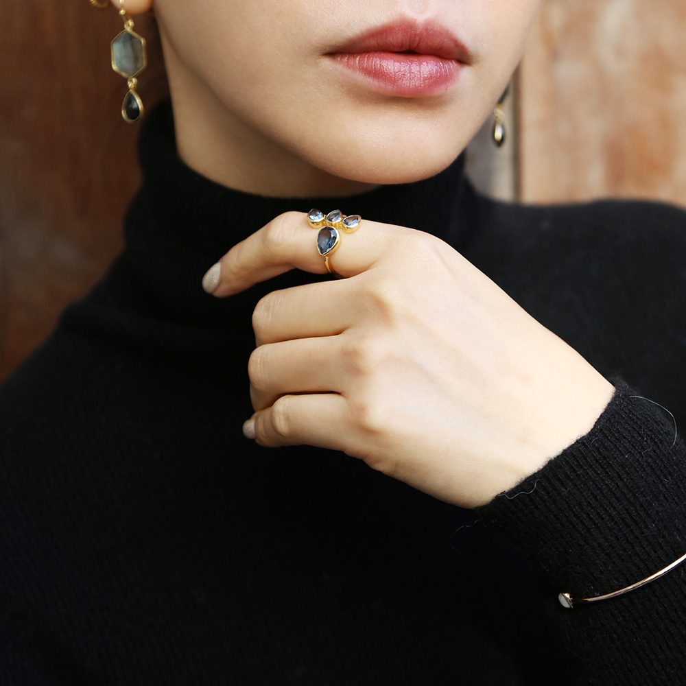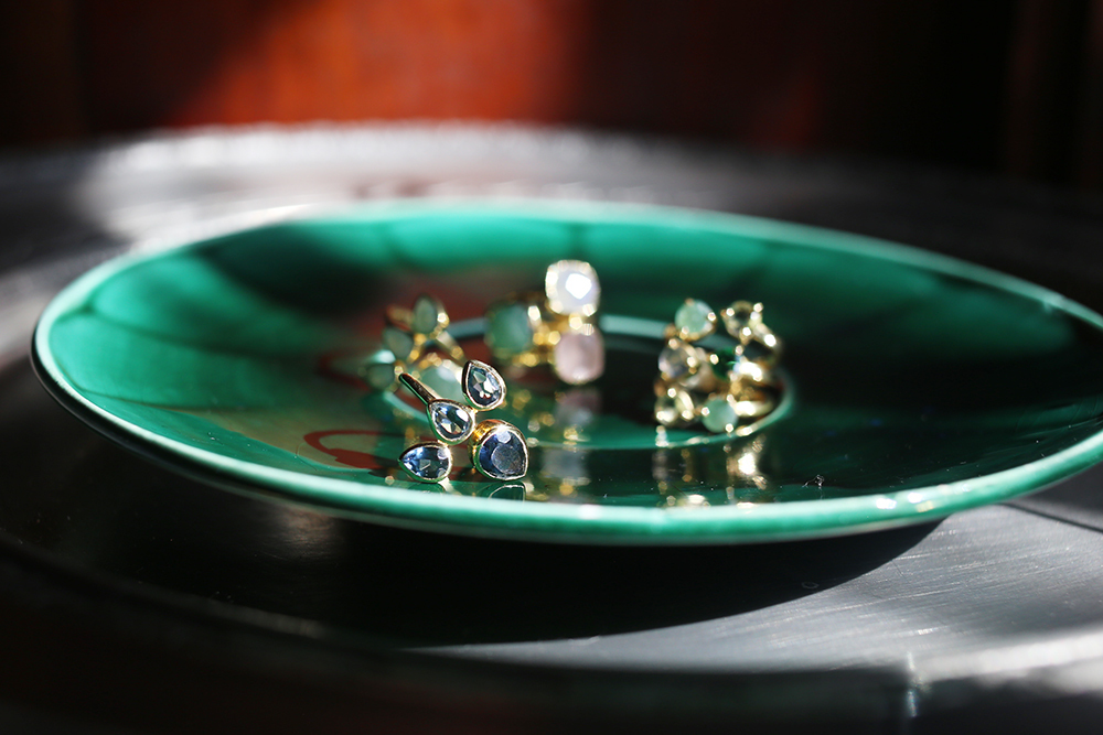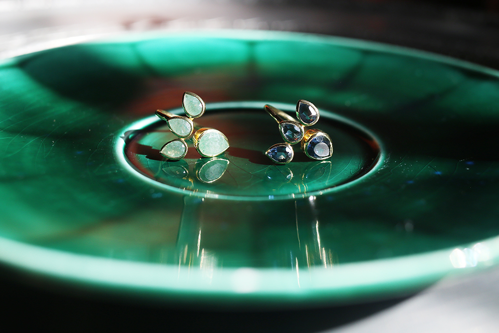 以優雅,感性和細緻,結合古典與現代,以黃銅,天然月光石、青金石、珍珠母貝、翡翠、碧璽、石英、黃玉、瑪瑙、葡萄石、東陵石等寶石的結合