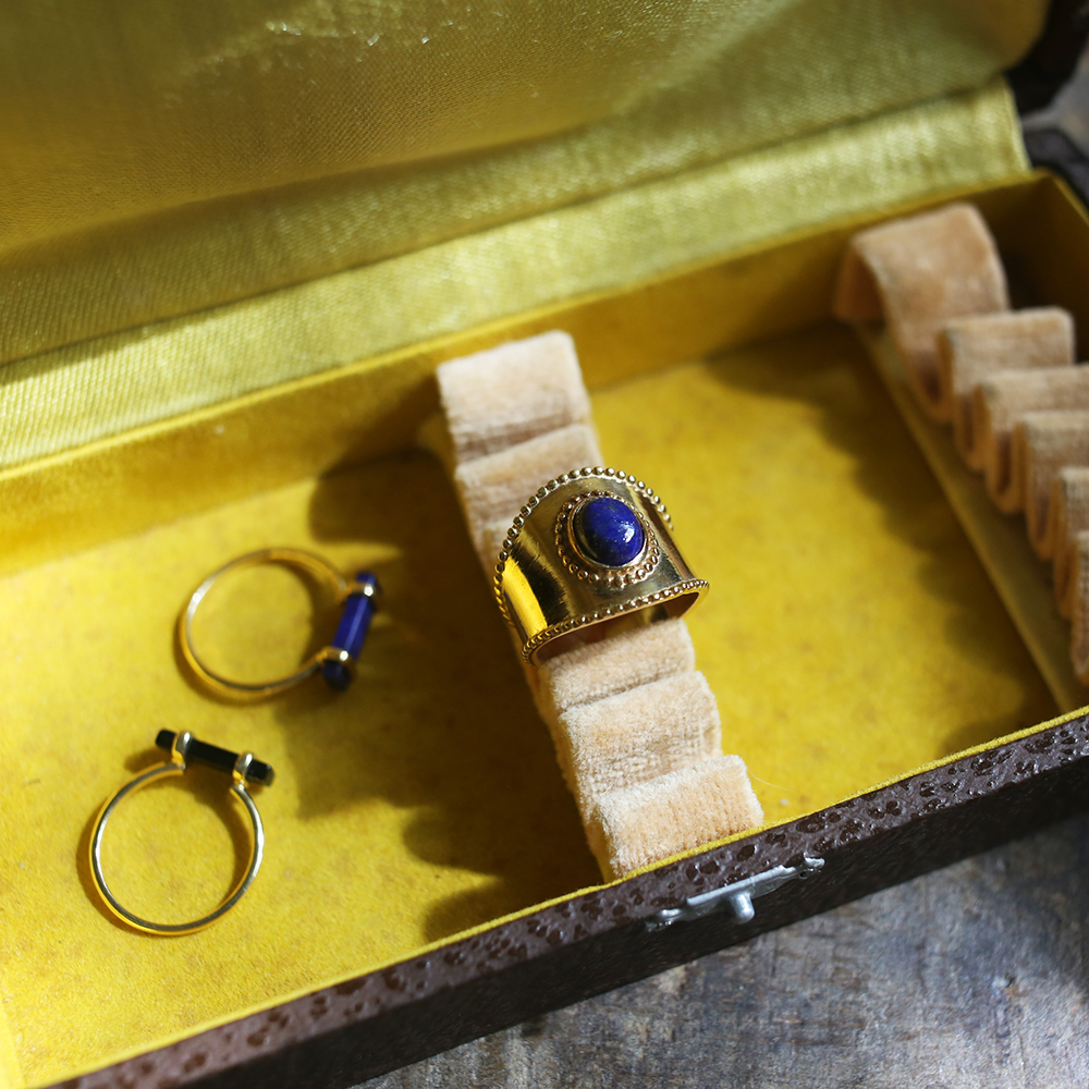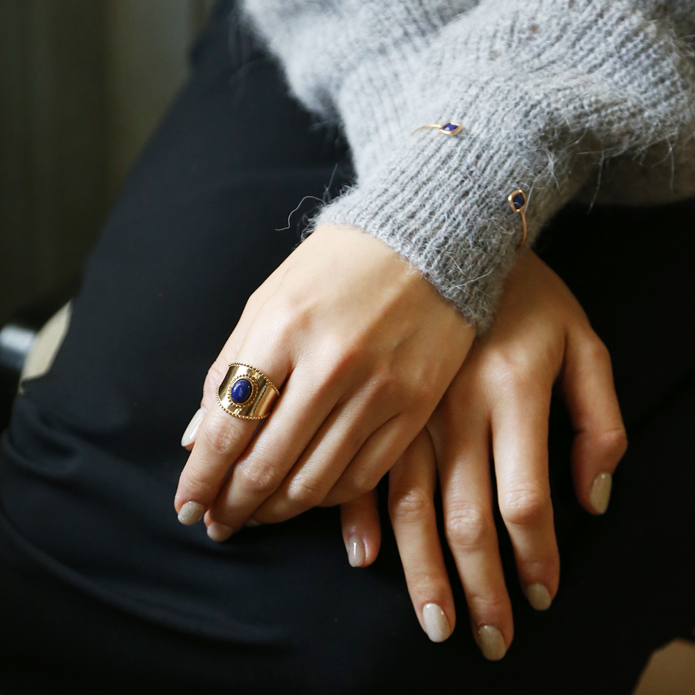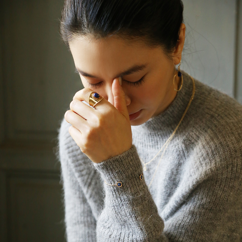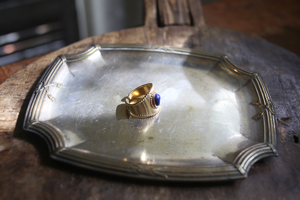 以優雅,感性和細緻,結合古典與現代,以黃銅,天然月光石、青金石、珍珠母貝、翡翠、碧璽、石英、黃玉、瑪瑙、葡萄石、東陵石等寶石的結合