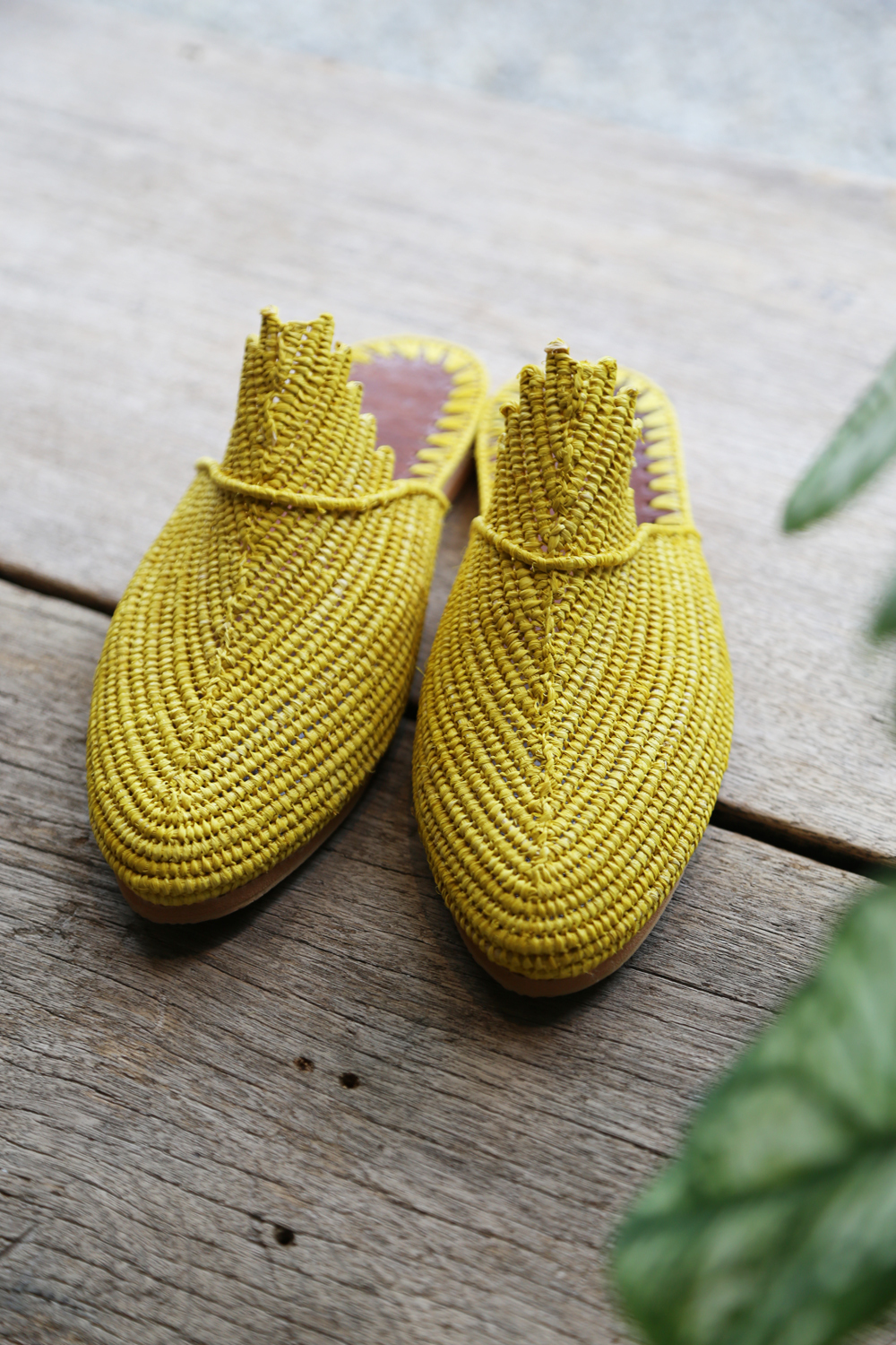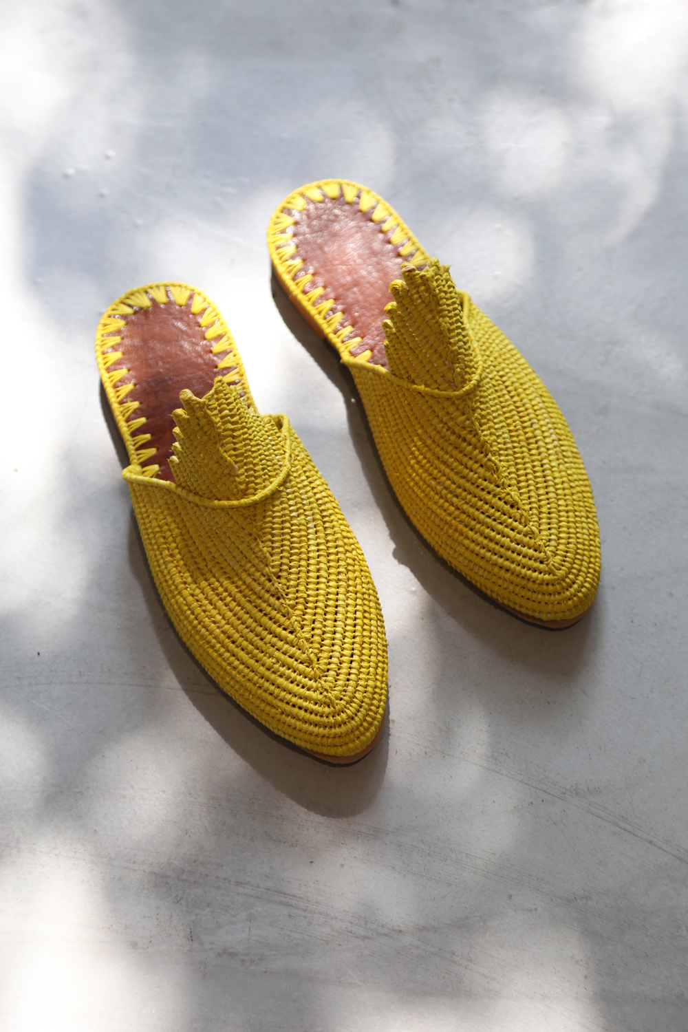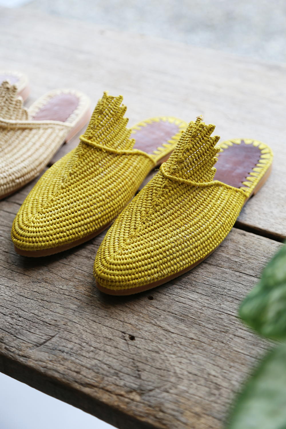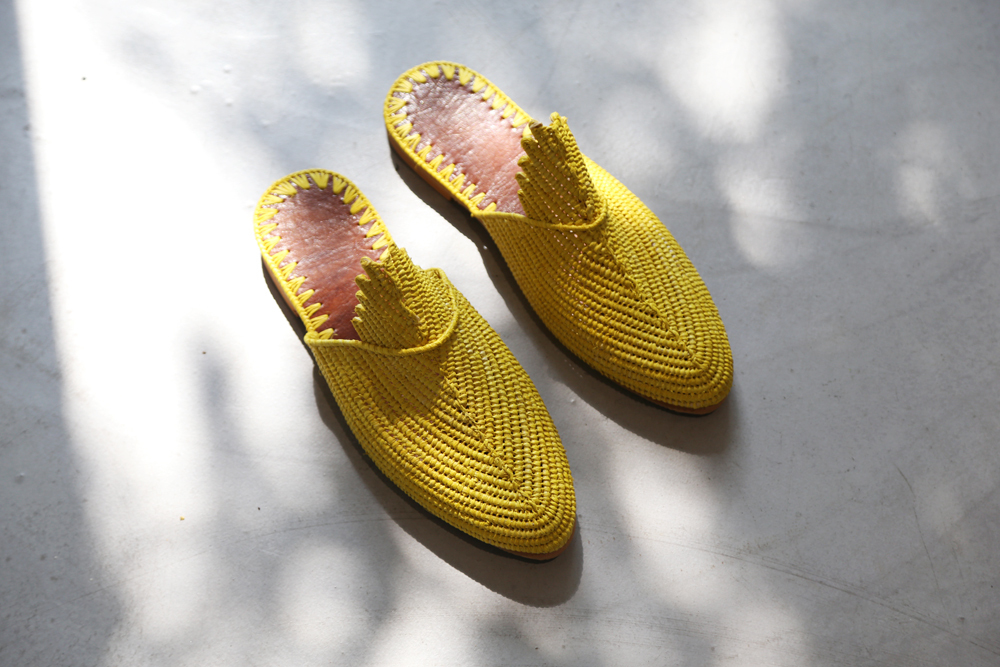 來自摩洛哥的手工編織拉菲草牛皮穆勒鞋/涼鞋