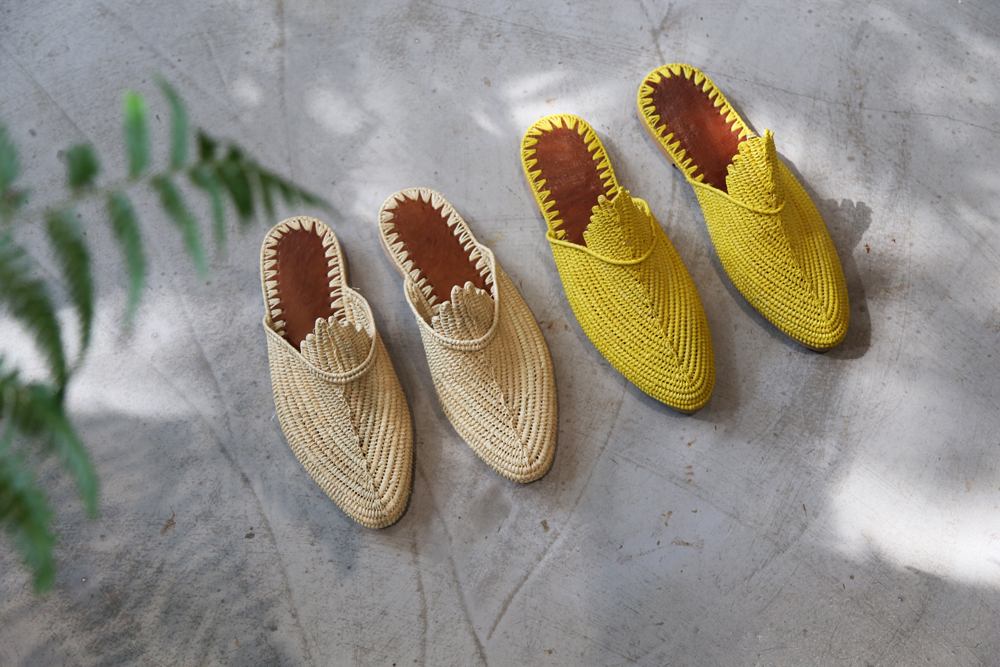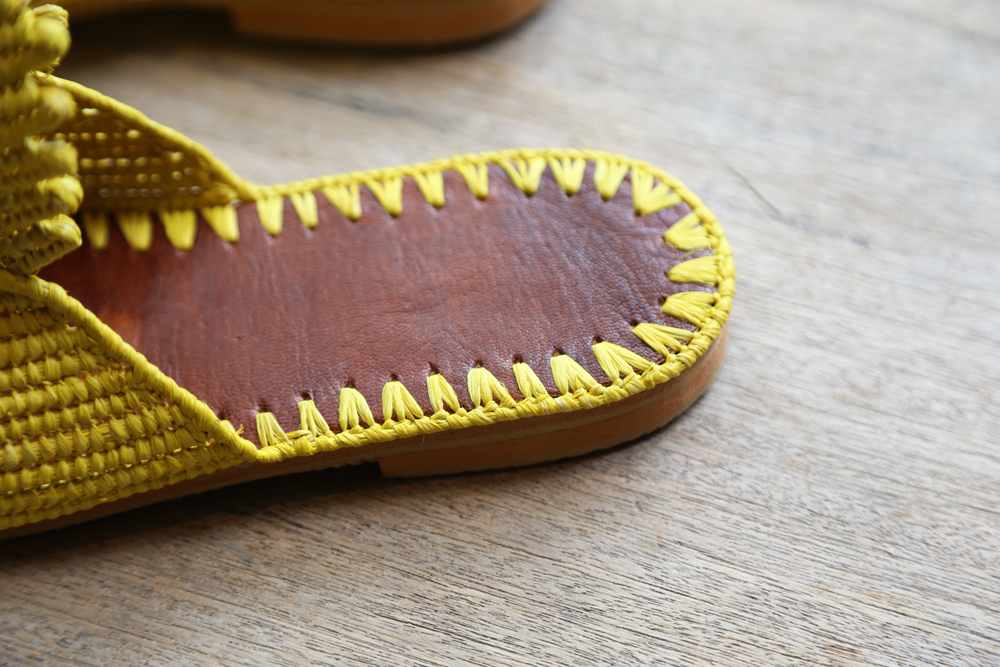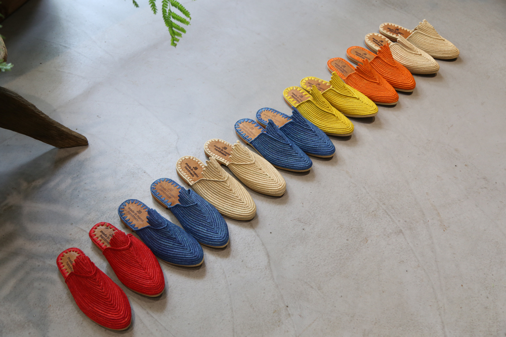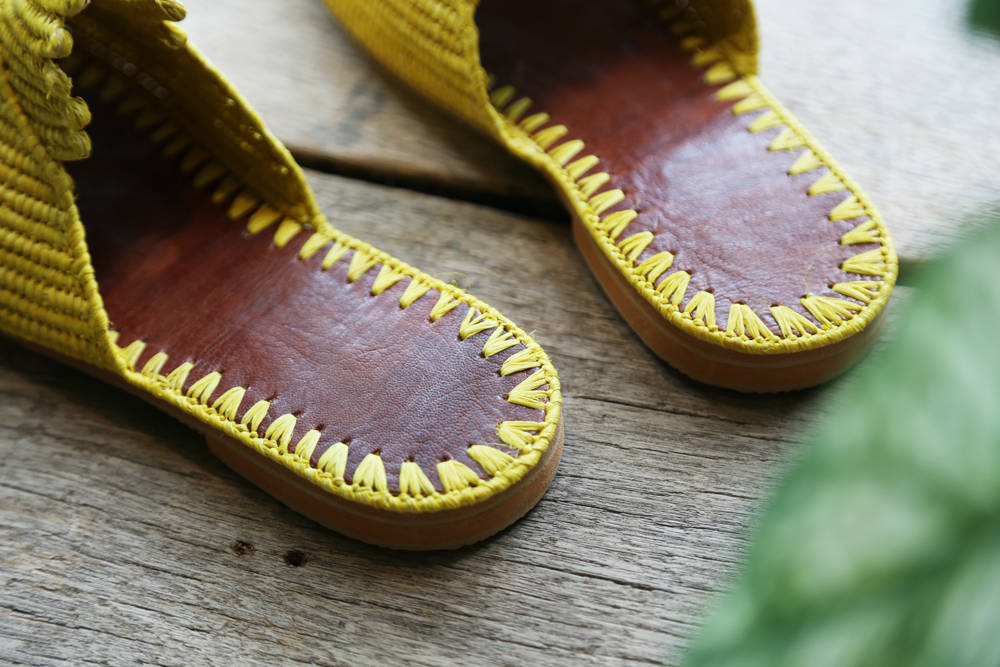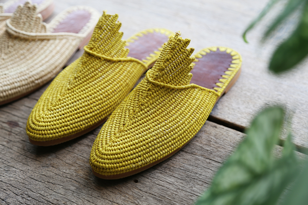 細緻的拉菲草手工編織, 搭配天然皮革及防滑膠底