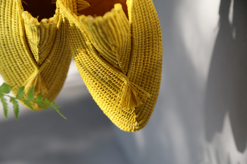 細緻的拉菲草手工編織, 搭配天然皮革及防滑膠底