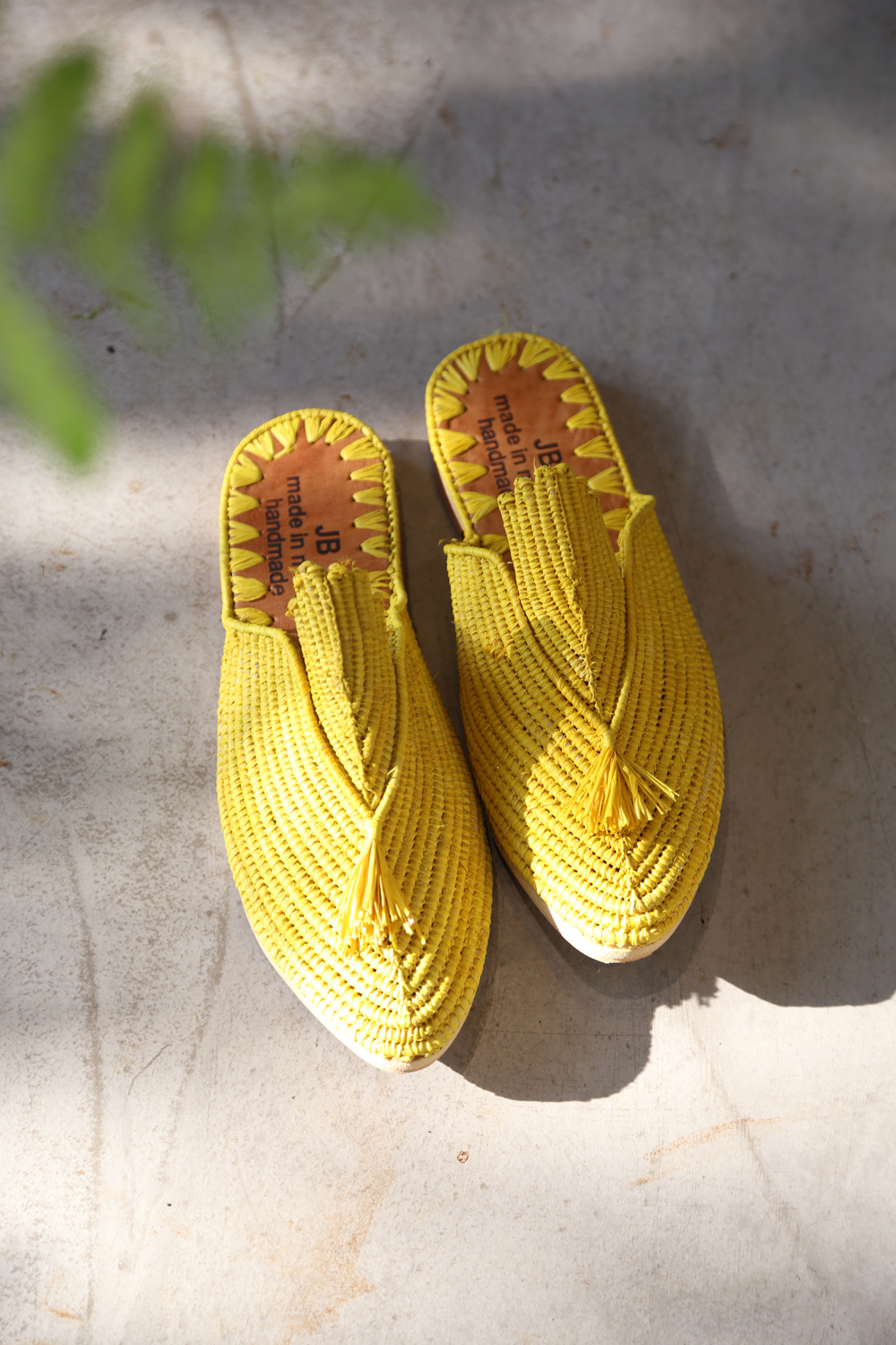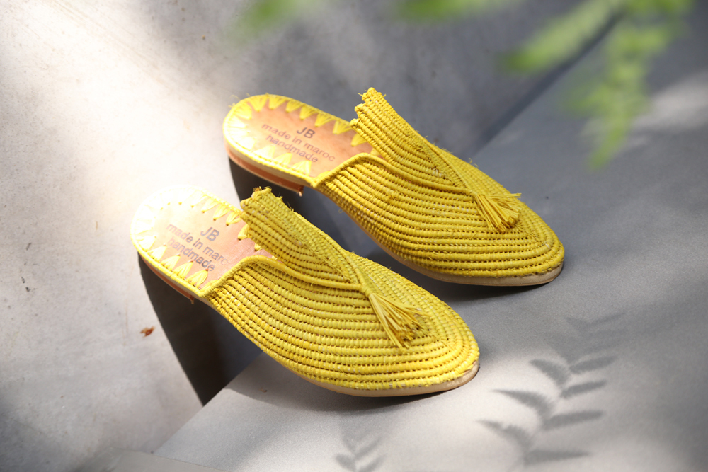 來自摩洛哥的手工編織拉菲草牛皮穆勒鞋/涼鞋