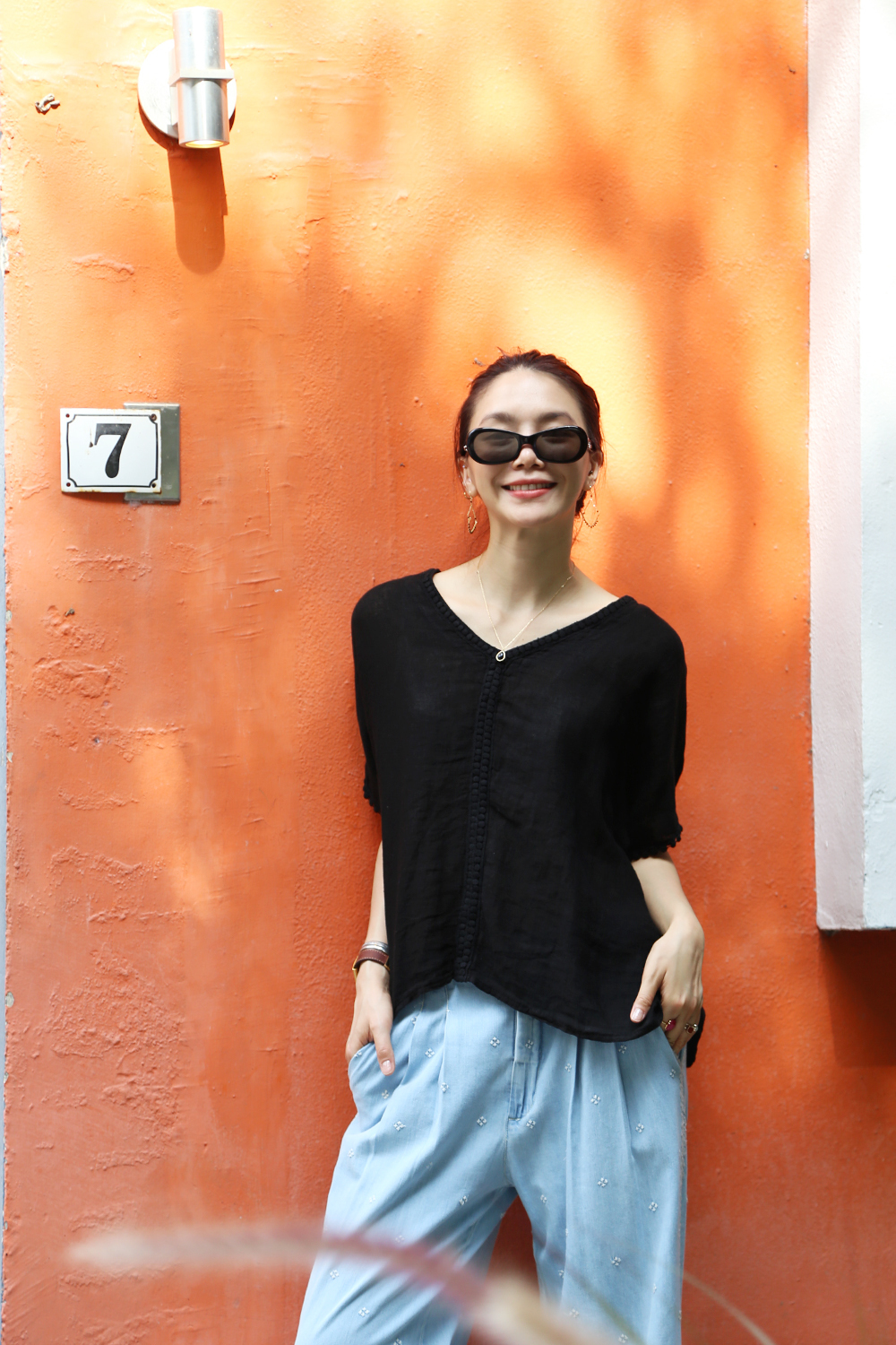 材質透氣舒適,是衣櫃裡不可缺的一件單品,陽光下冷氣房都舒適自在