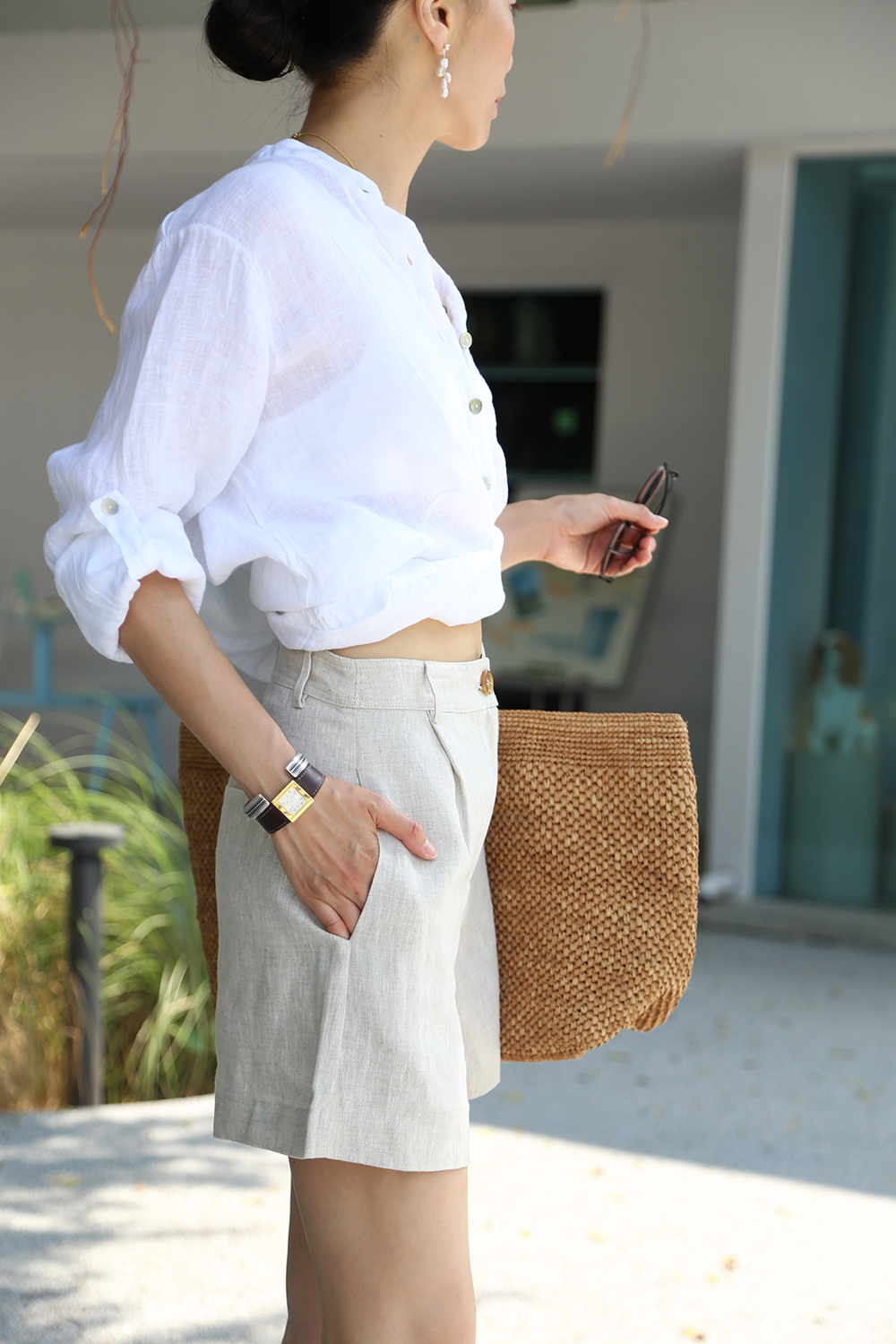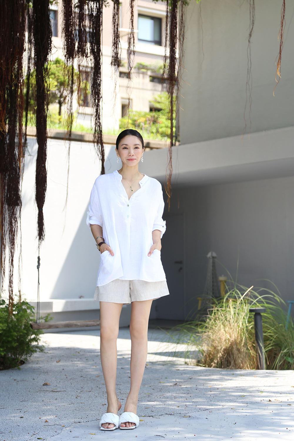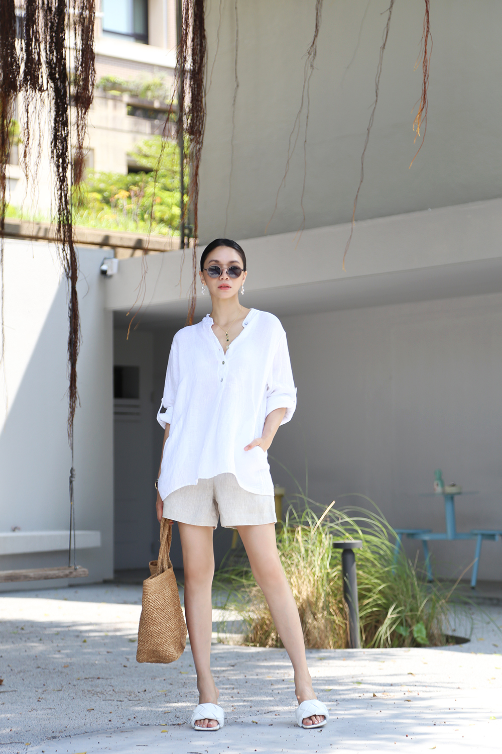 有點挺的亞麻材質,質感非常好,透氣又舒適