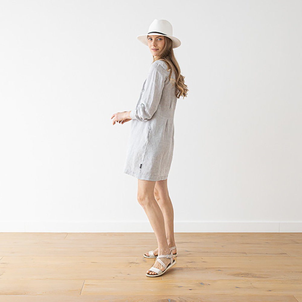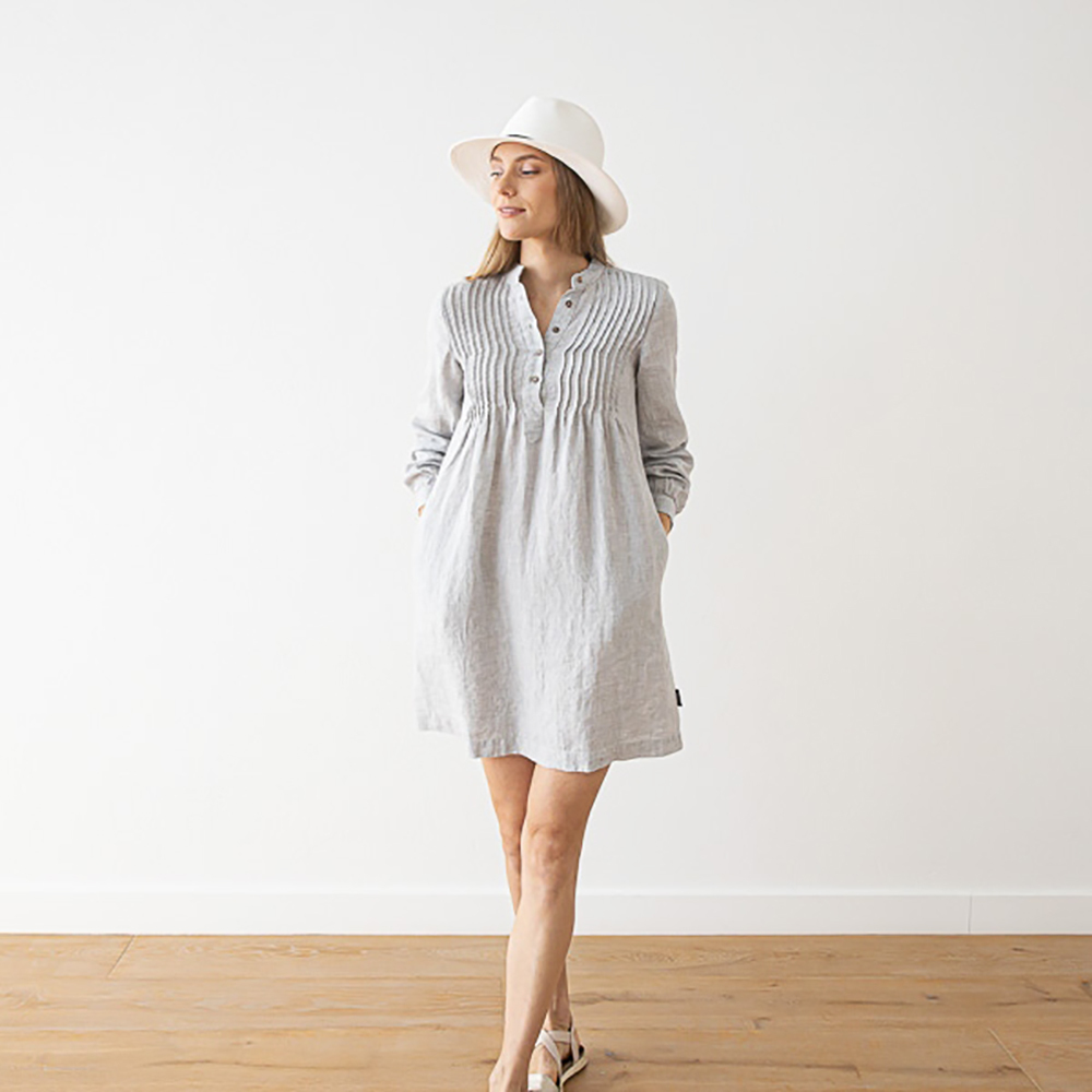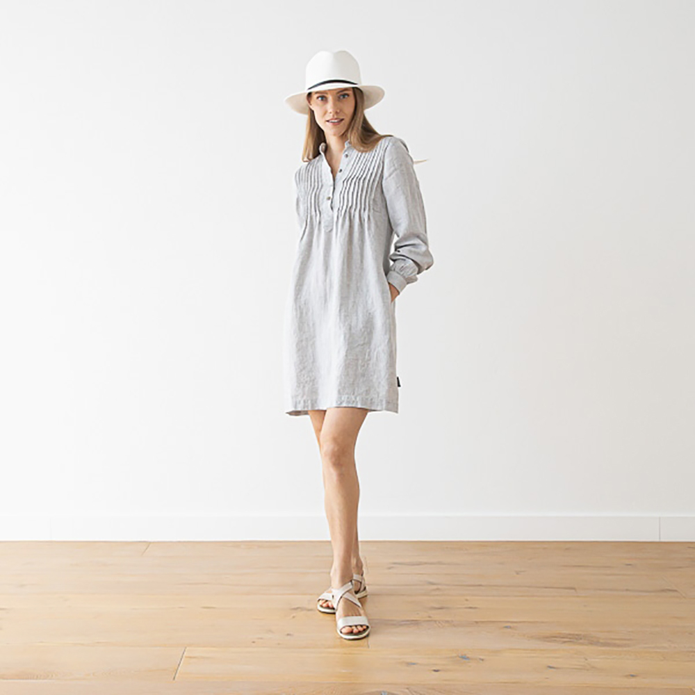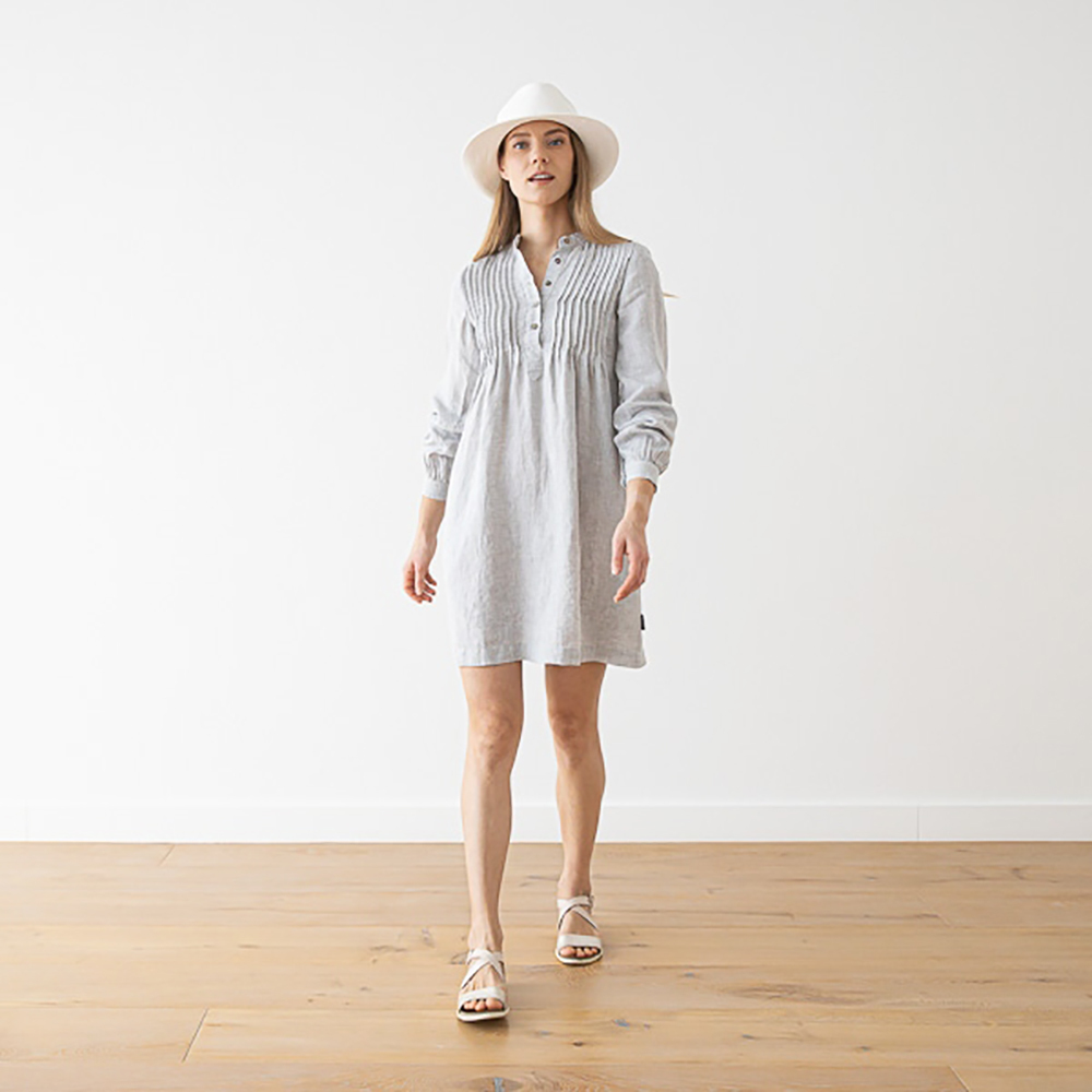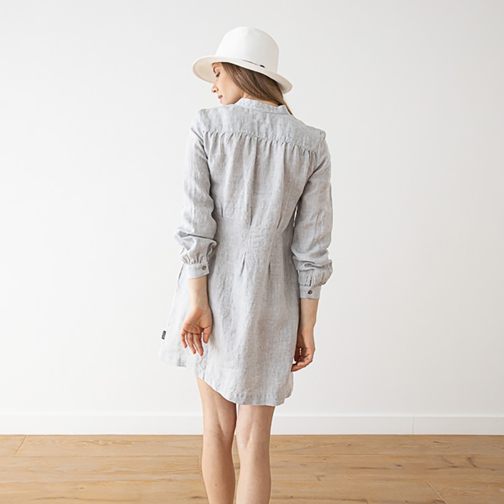 這款長版衫採用時尚的襯衫裙款式,夏季則可搭配古銅色裸腿,打造優雅氣質