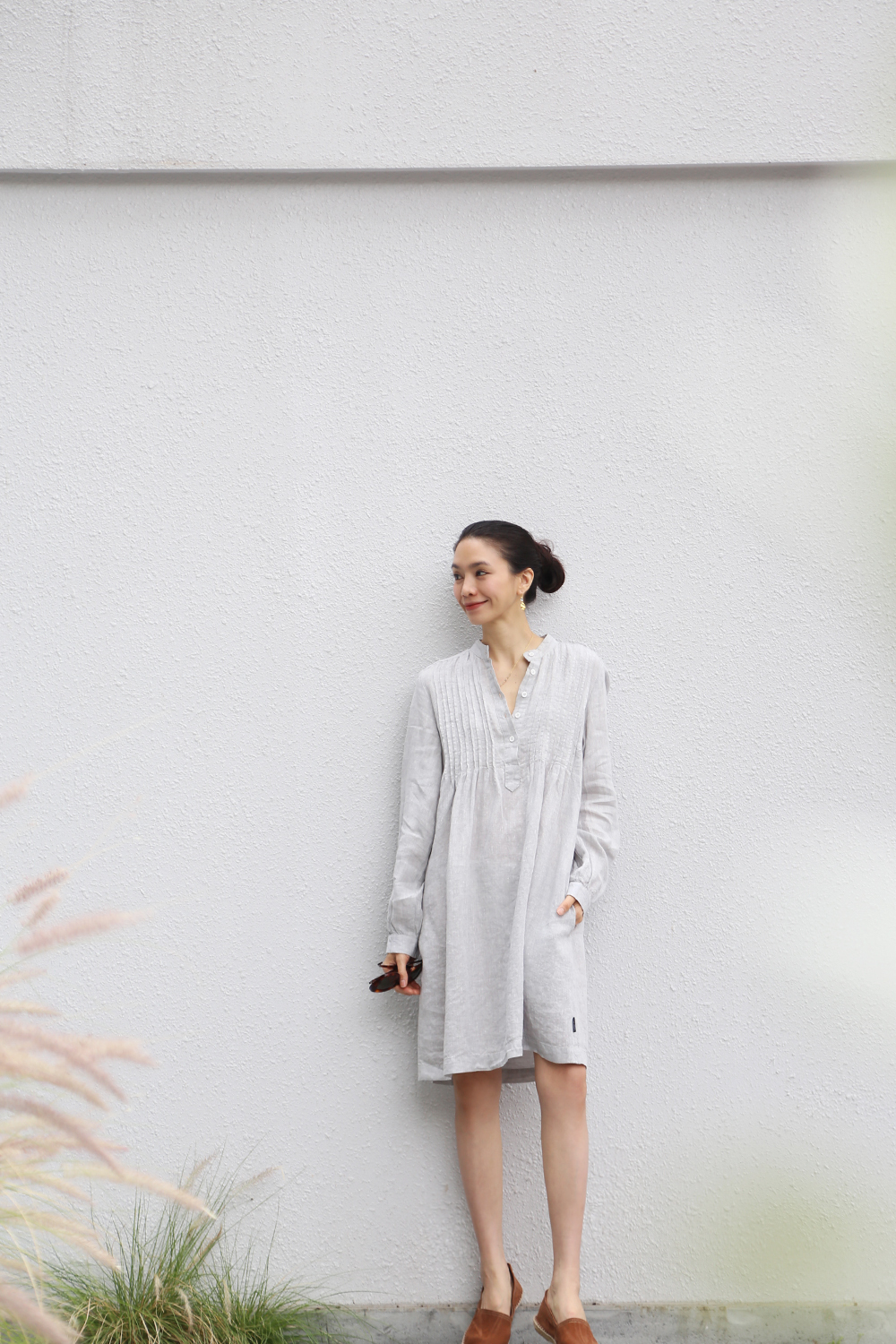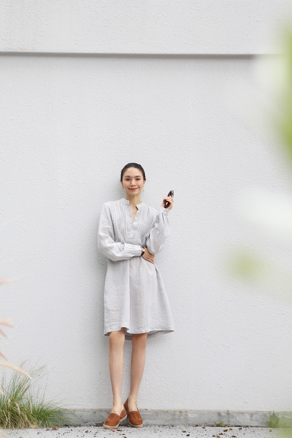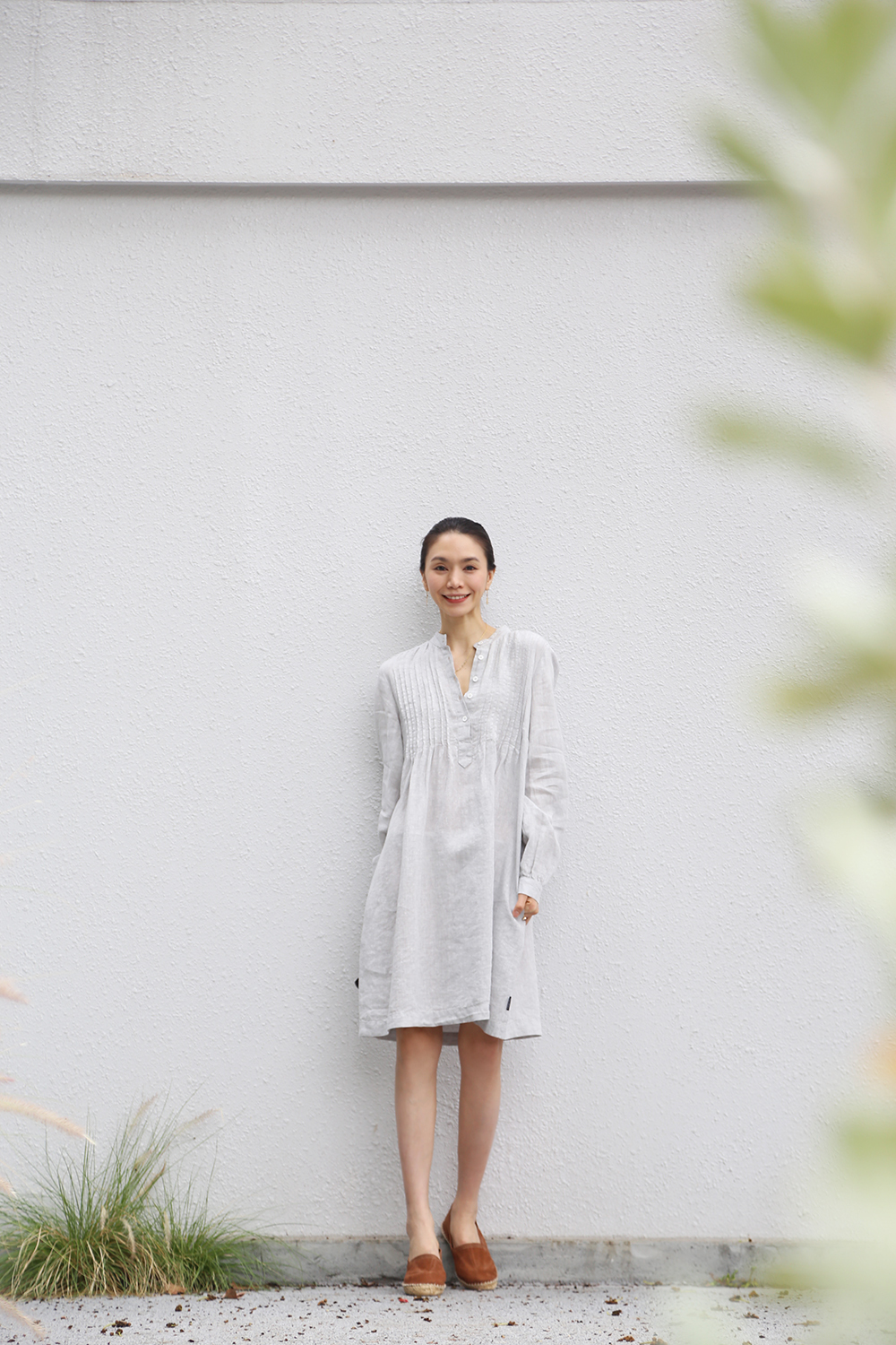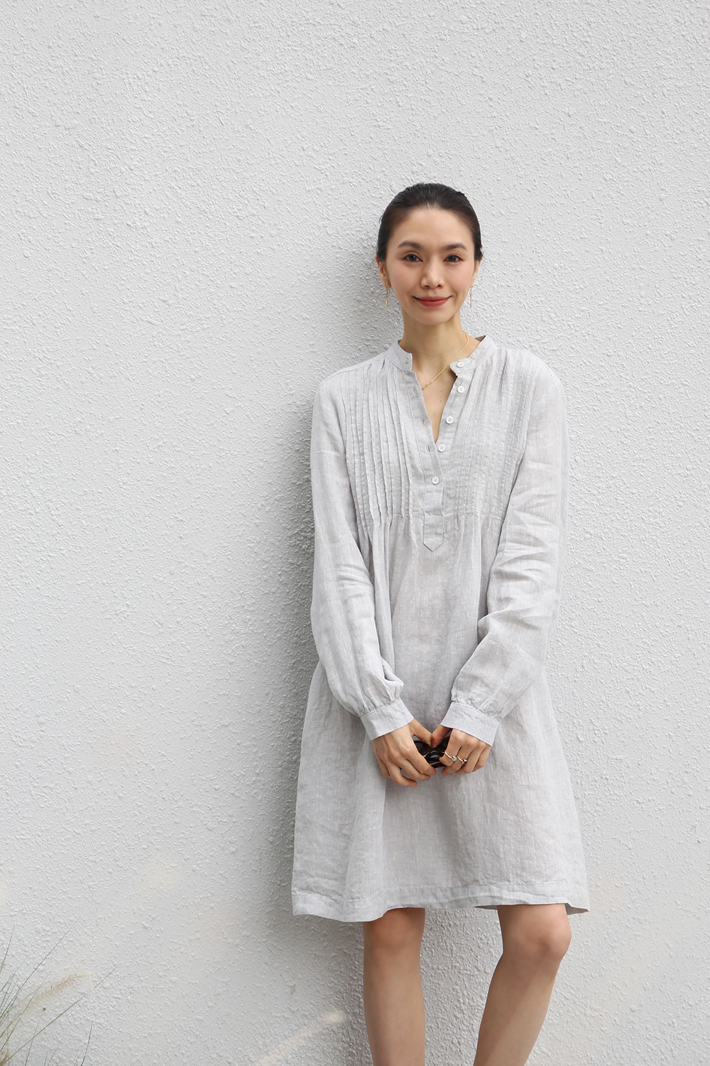 這款長版衫採用時尚的襯衫裙款式,展現優雅氣質