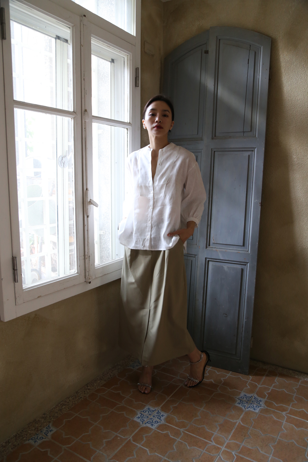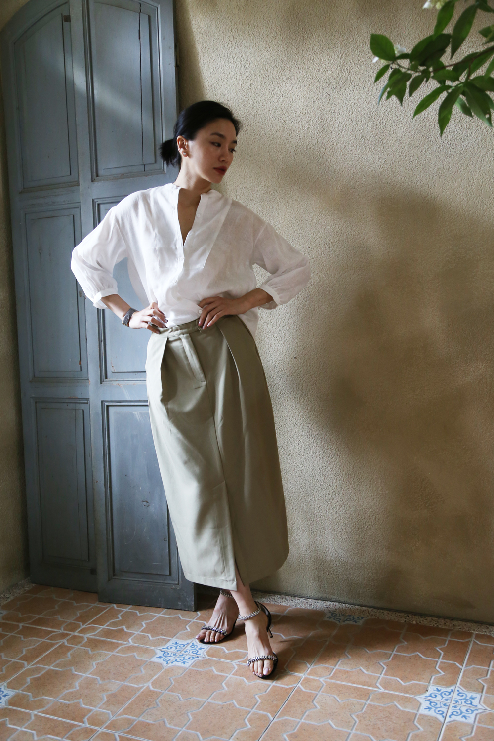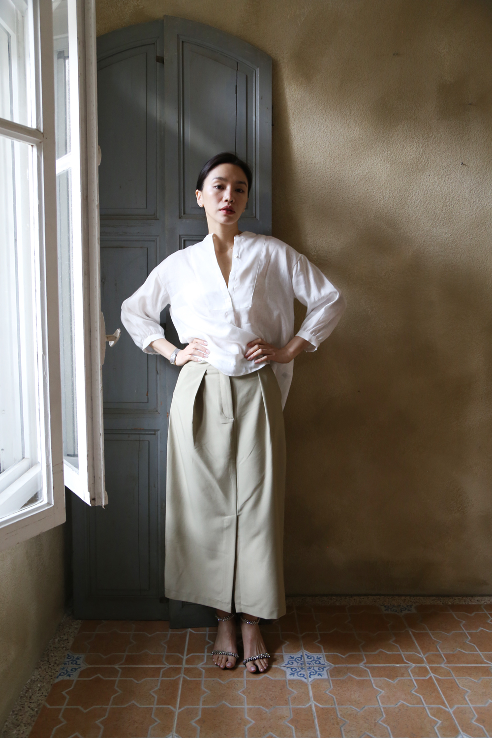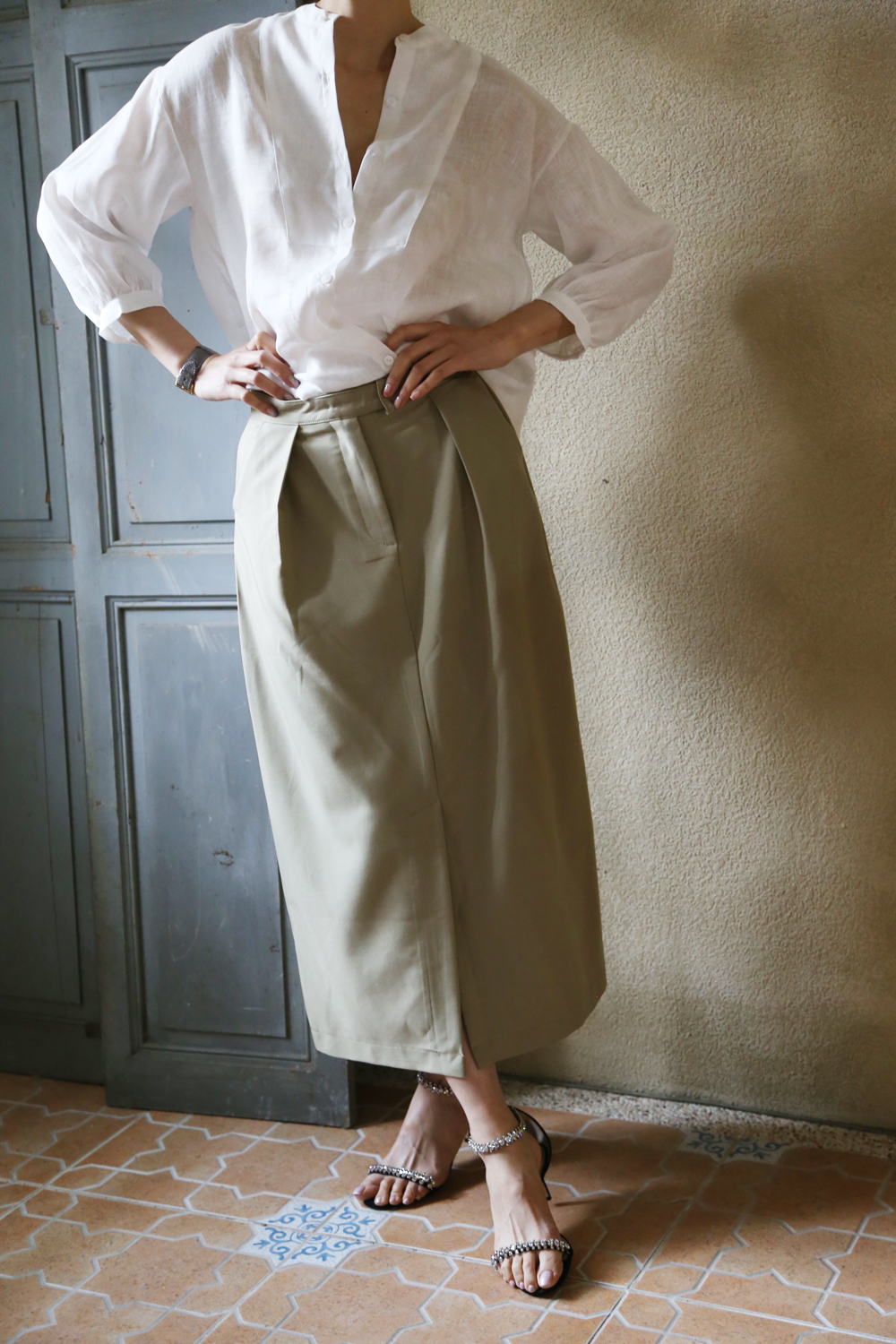 卡其長裙,顏色非常雅緻,材質柔軟舒適,不透光,讓下半身更修長