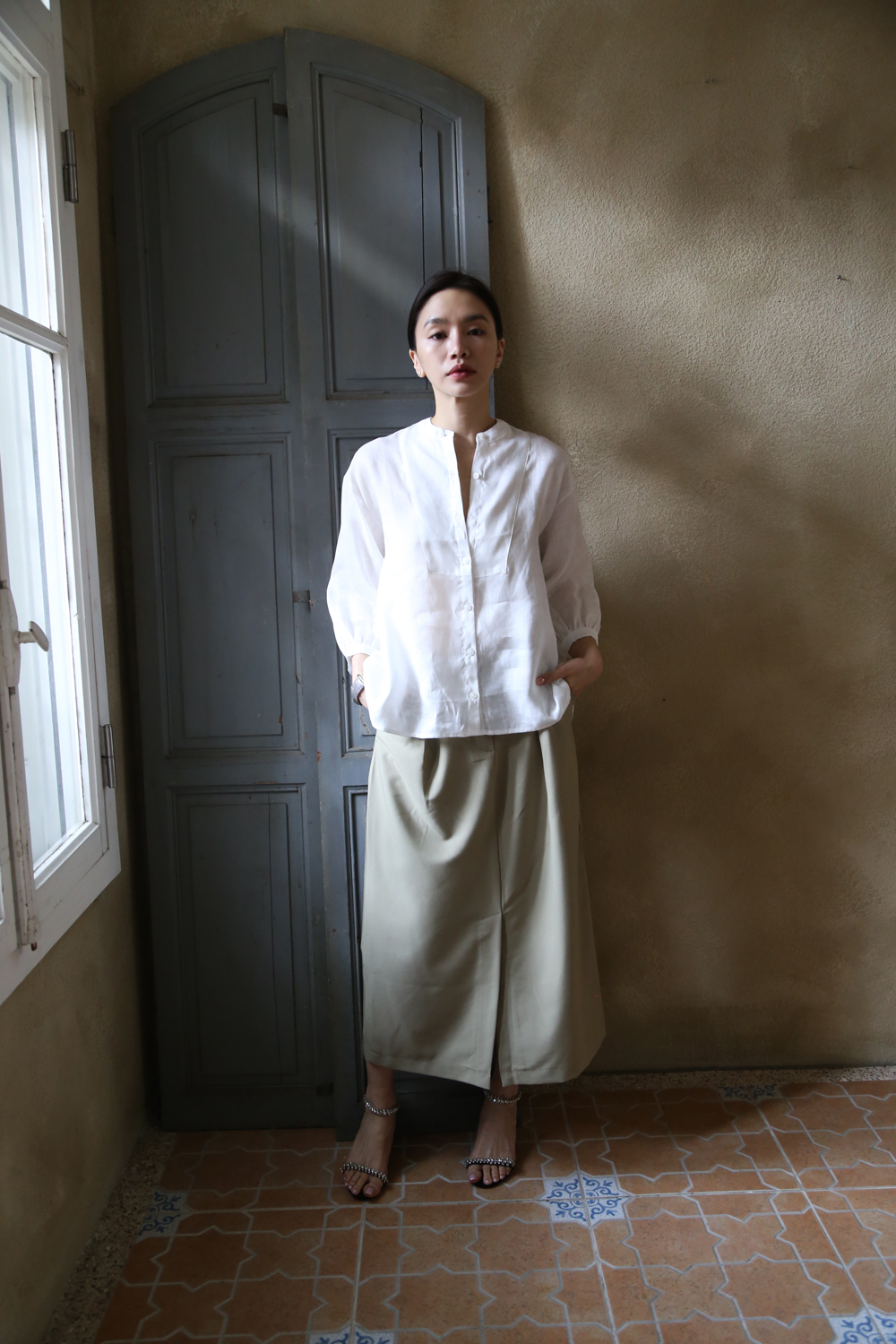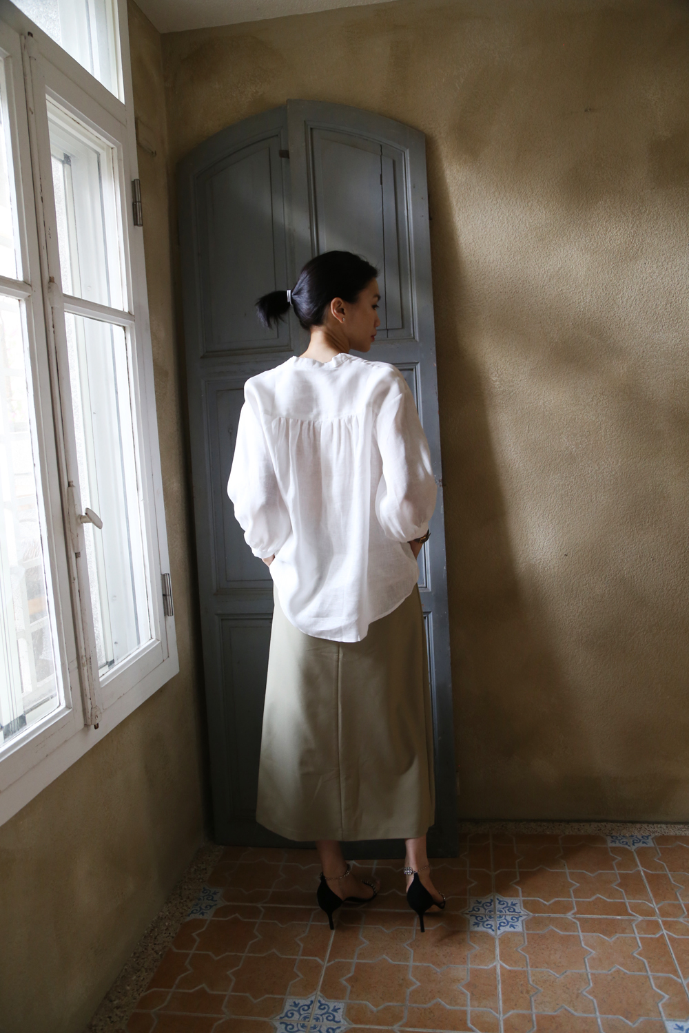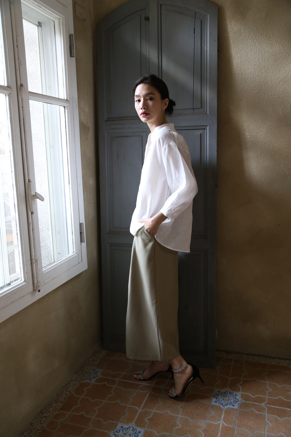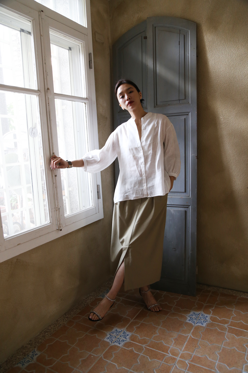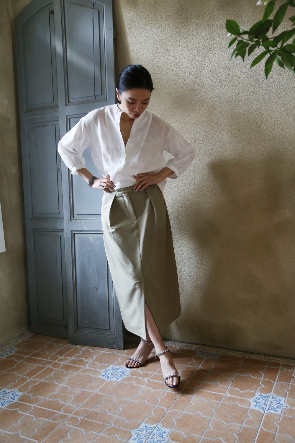 卡其長裙,顏色非常雅緻,材質柔軟舒適,不透光,讓下半身更修長