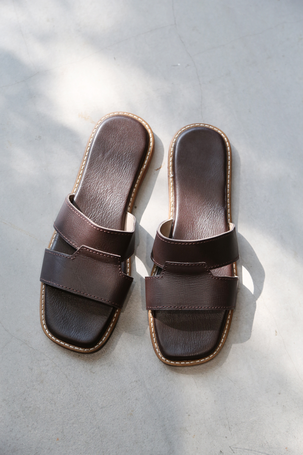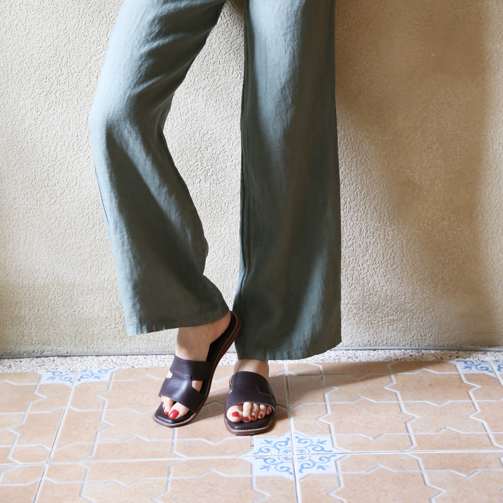 使用傳統染製的穆勒鞋,新鞋皮革多少會有天然皮革的氣味,建議收到時可放置於通風處數天,氣味會慢慢散去,有明顯改善