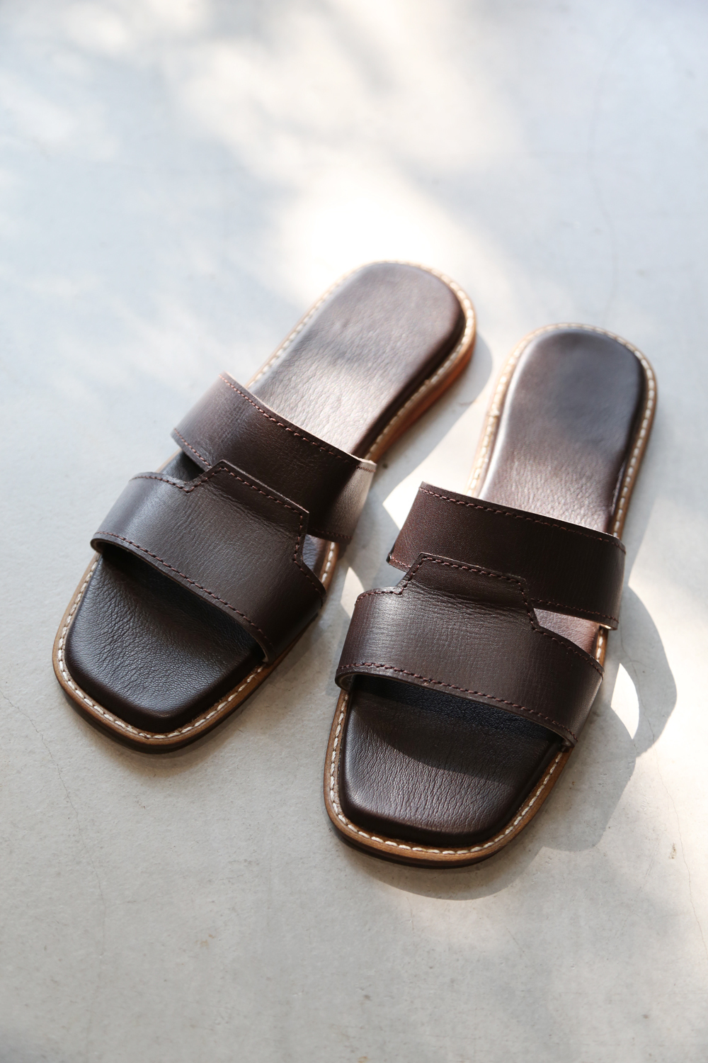 皮革保養方式:穆勒鞋為全手工製作,尺寸及左右腳非完全精確標準化,無法像機器製作般工整平均