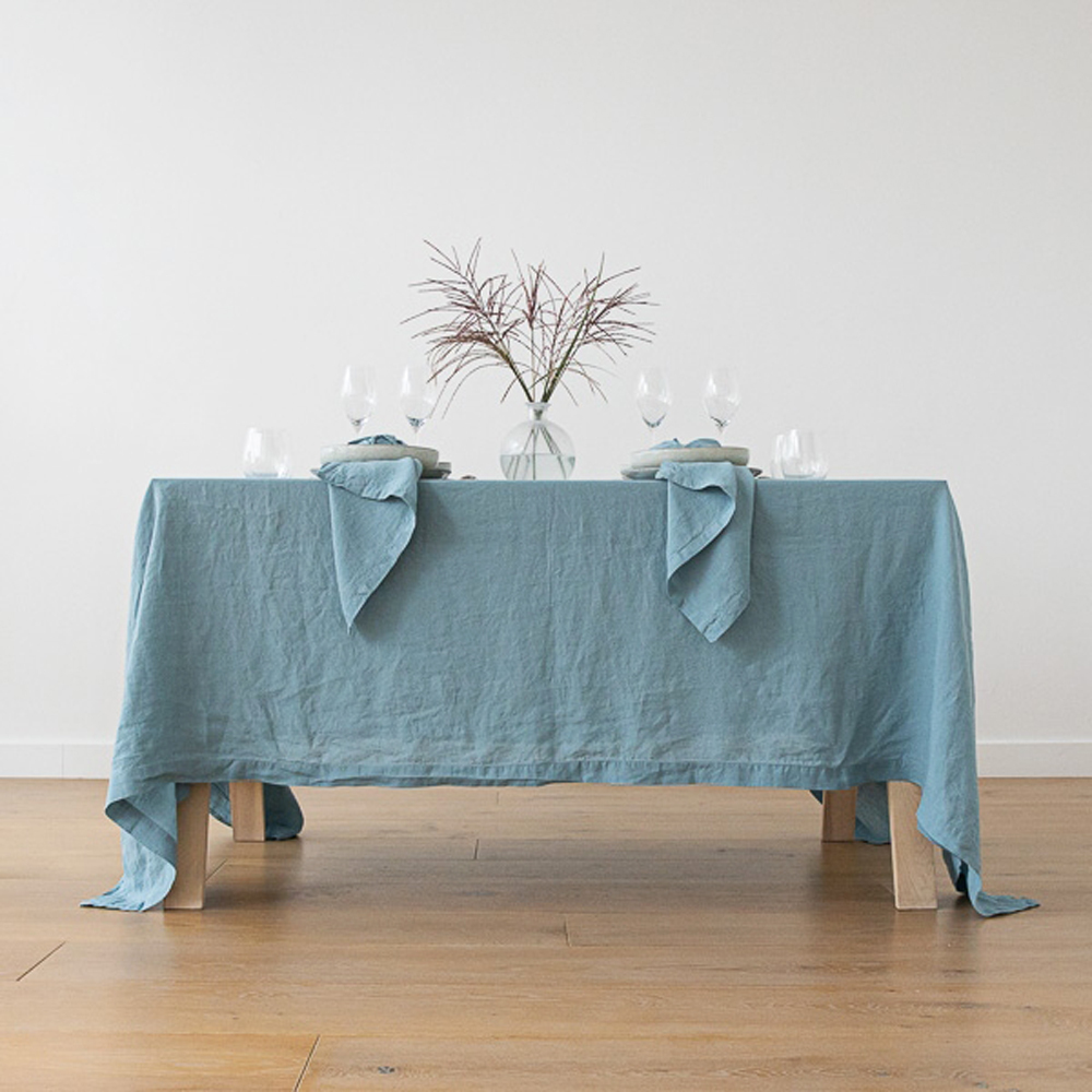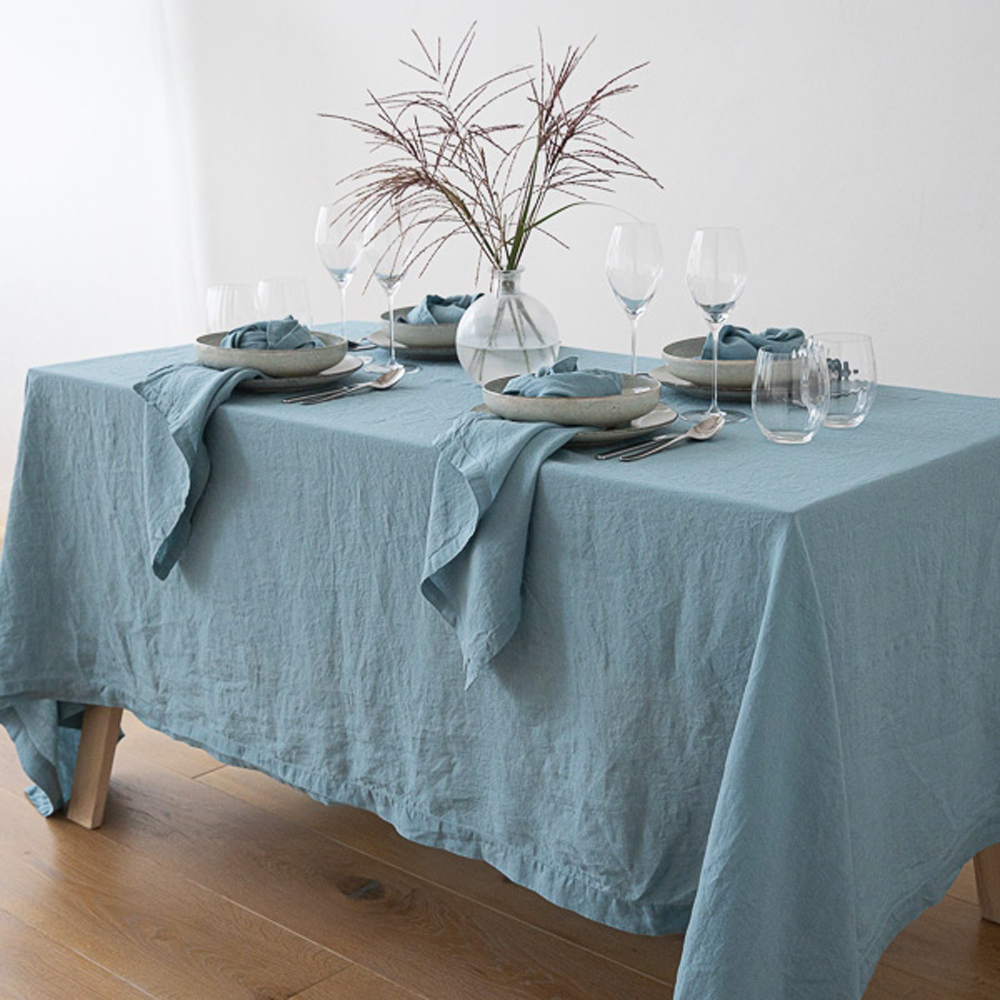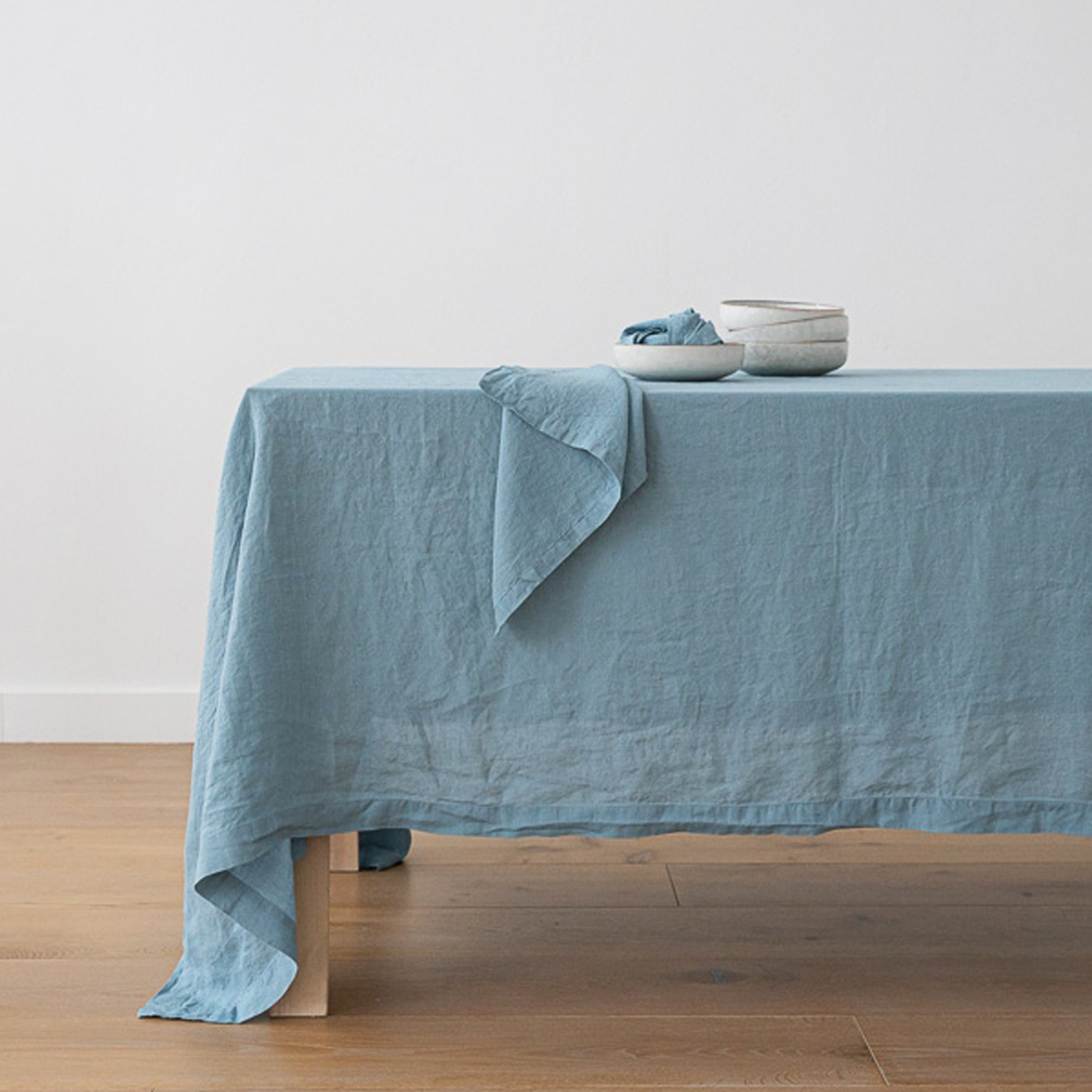 石洗亞麻桌巾-石藍色170x250cm