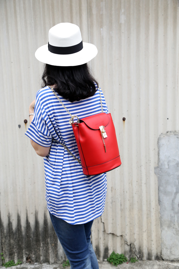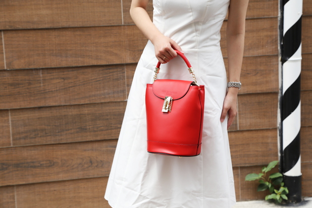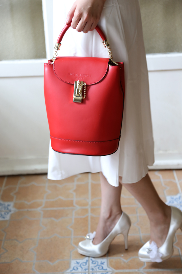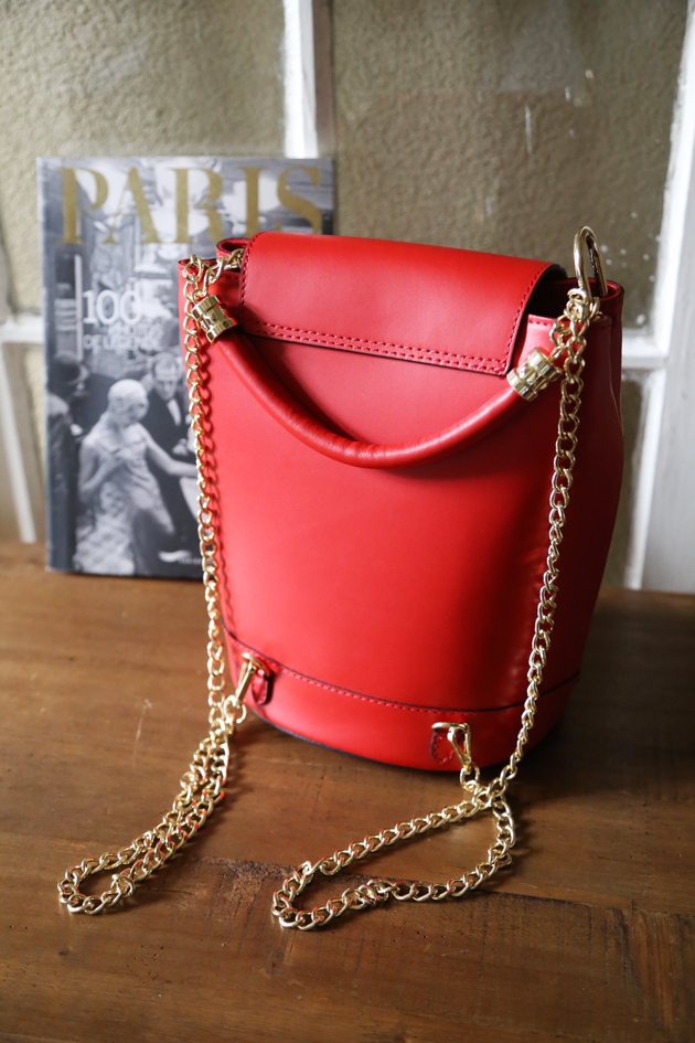 品名: SUSIE罌粟紅後背肩背側肩背三用桶包