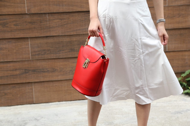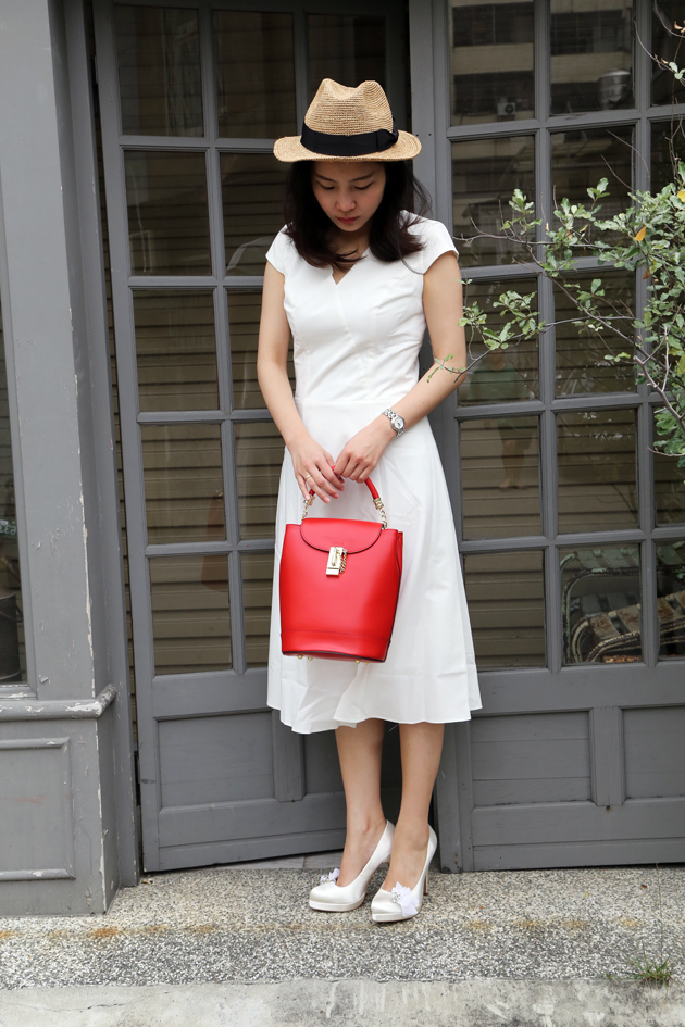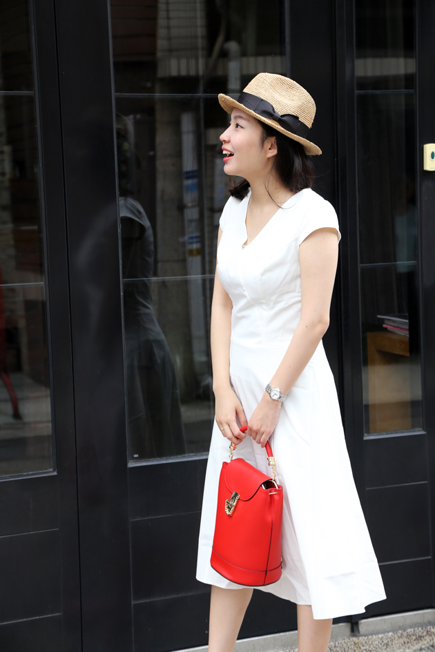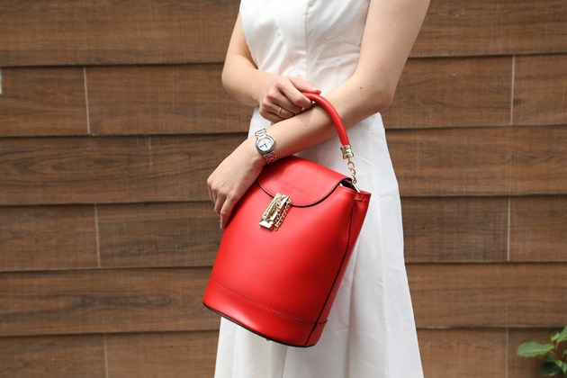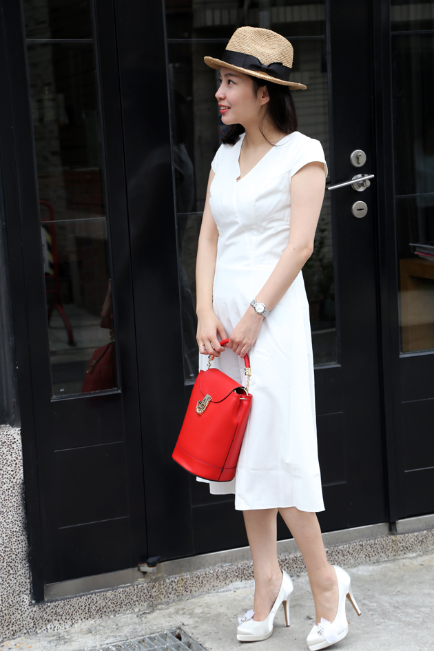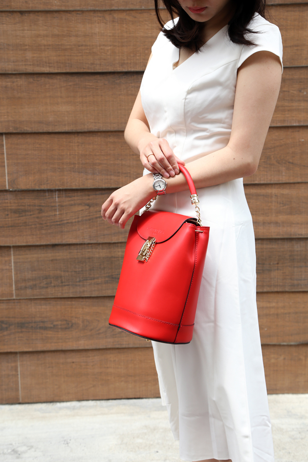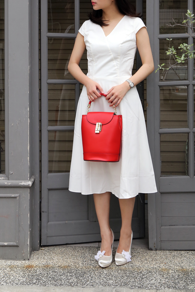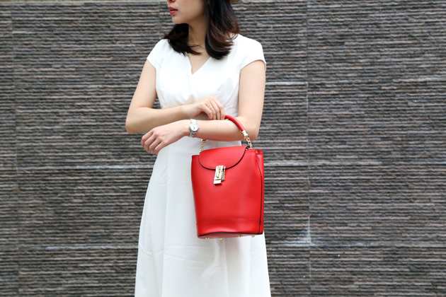 輕巧挽在手上,也是手上的一件飾品,簡約優雅的筒包搭配半圓造型蓋