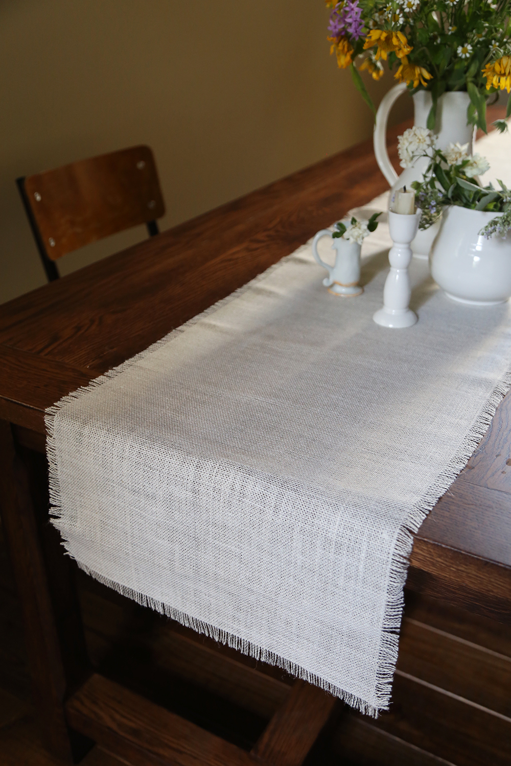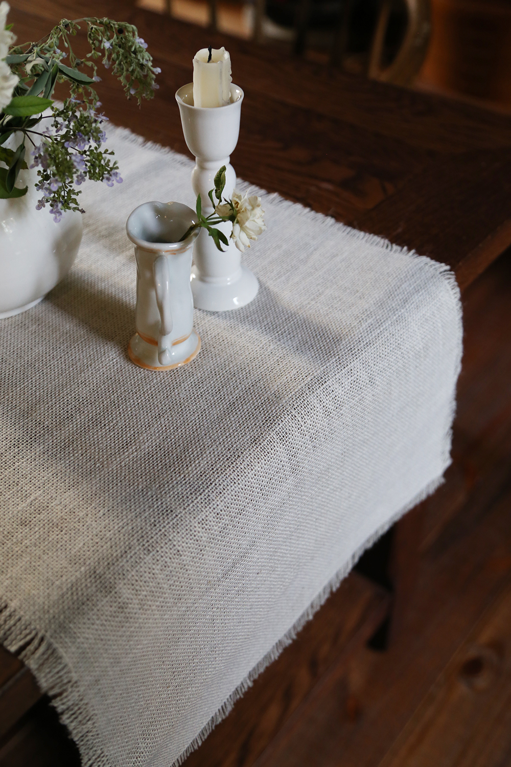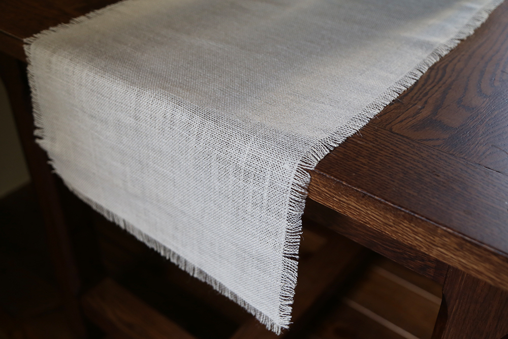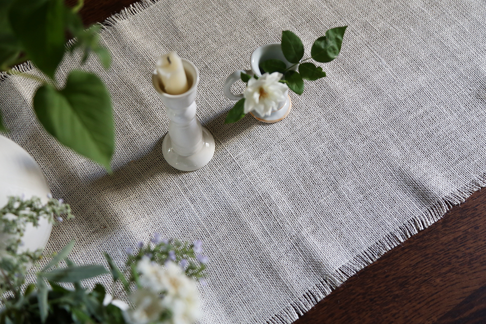 100%天然的亞麻桌旗,從紡紗到織造階段,完全是用最古老的紡織機手工製作