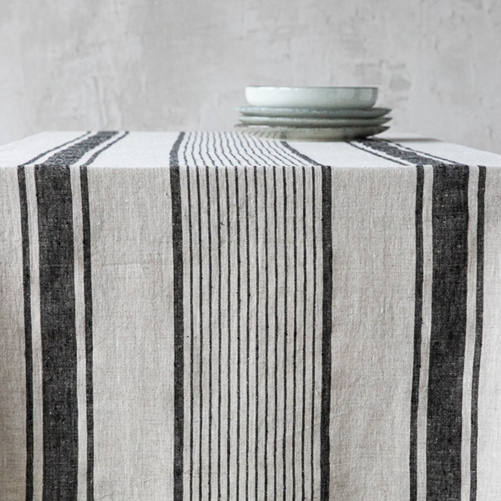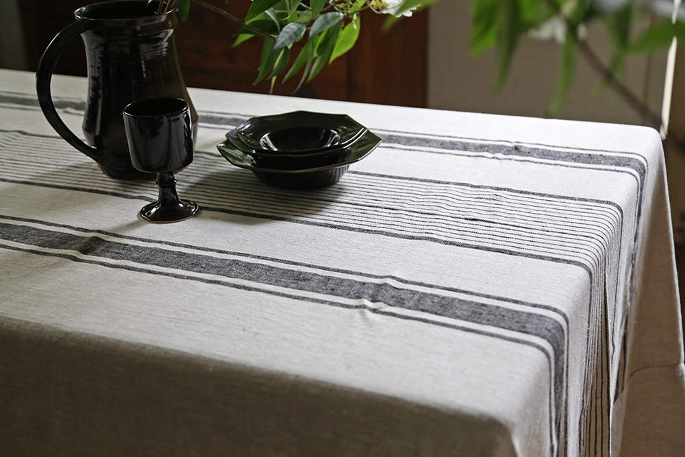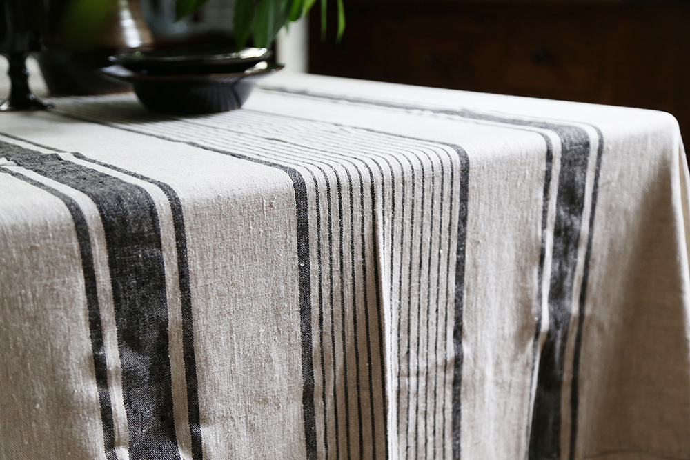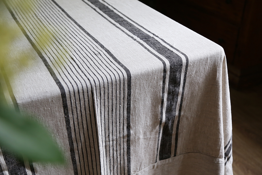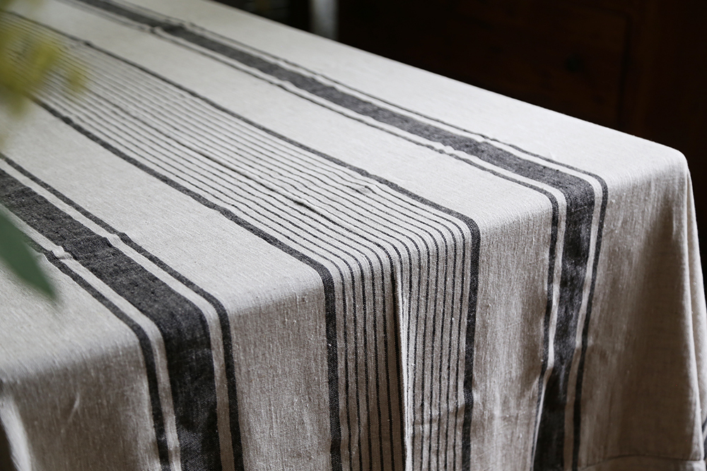 普羅旺斯亞麻桌巾-黑條紋178x275cm