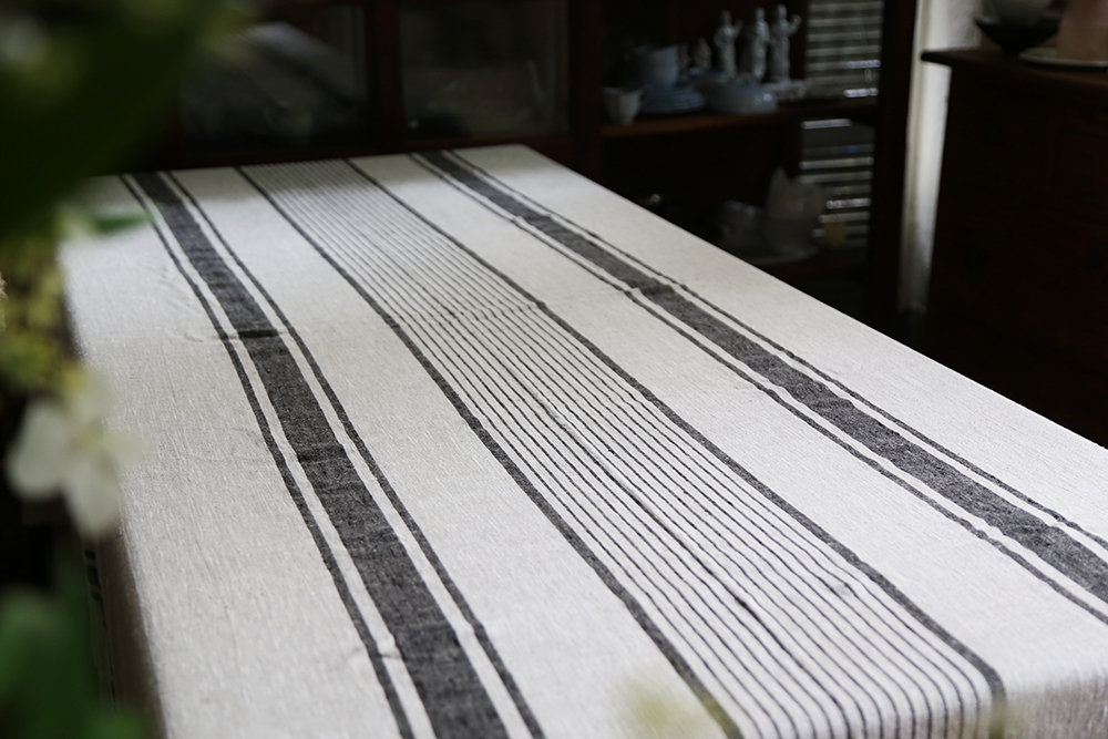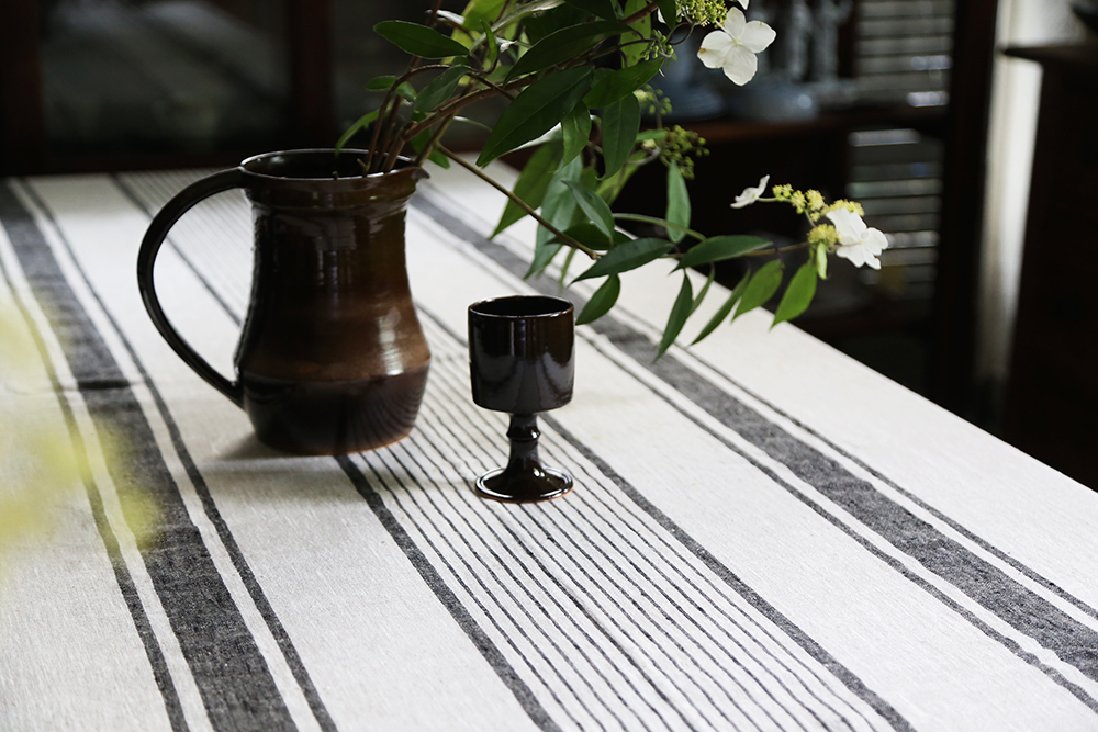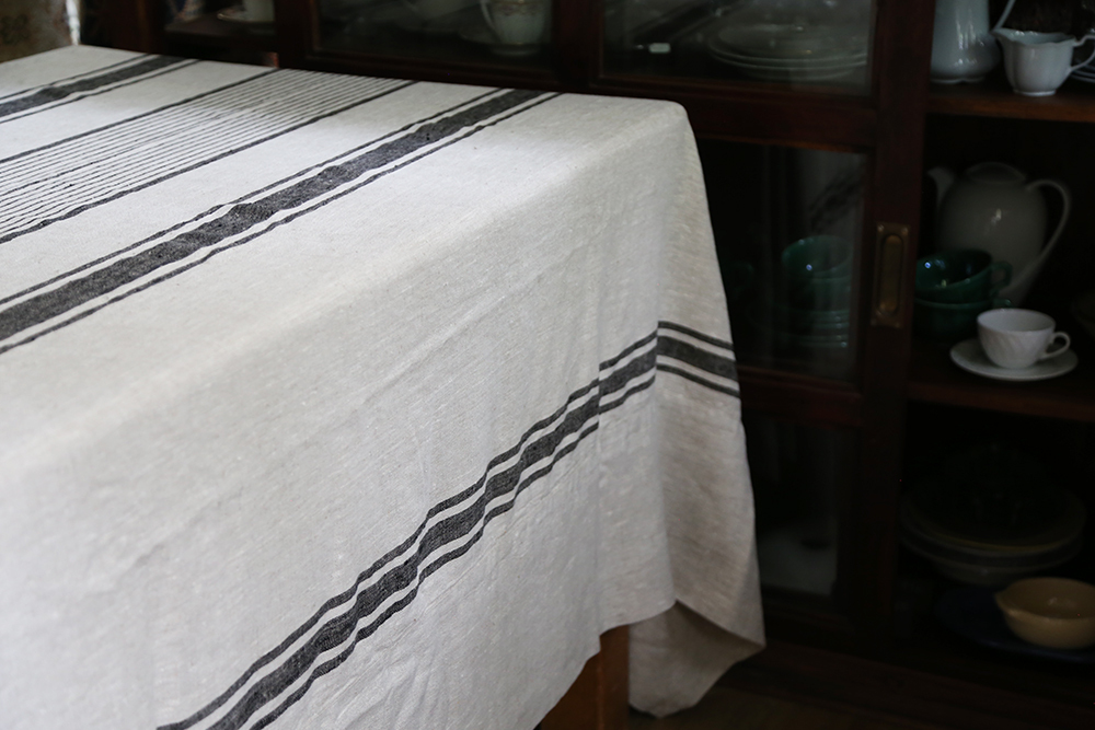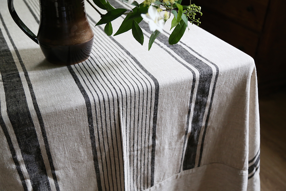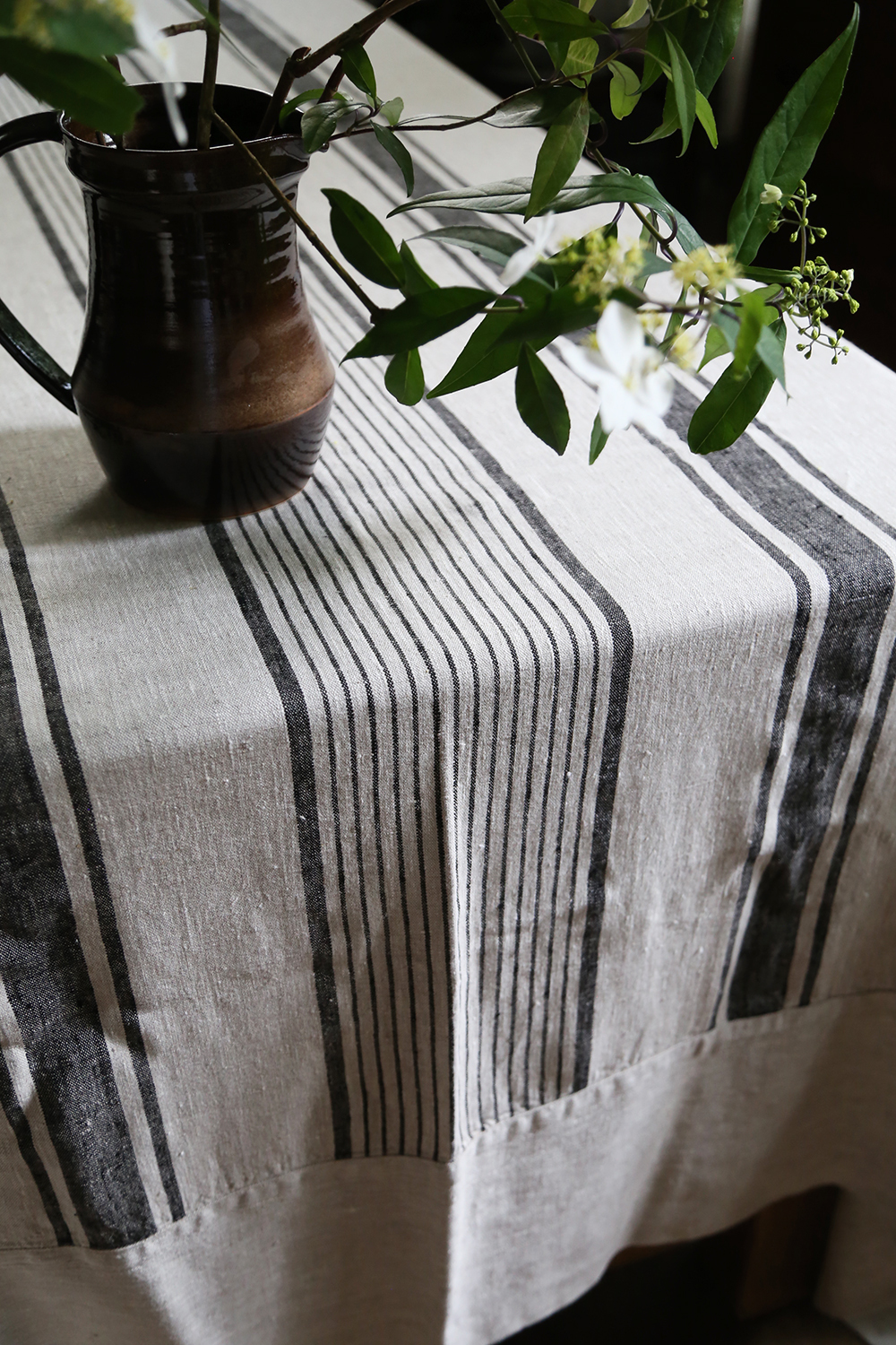 普羅旺斯亞麻桌巾-黑條紋178x275cm