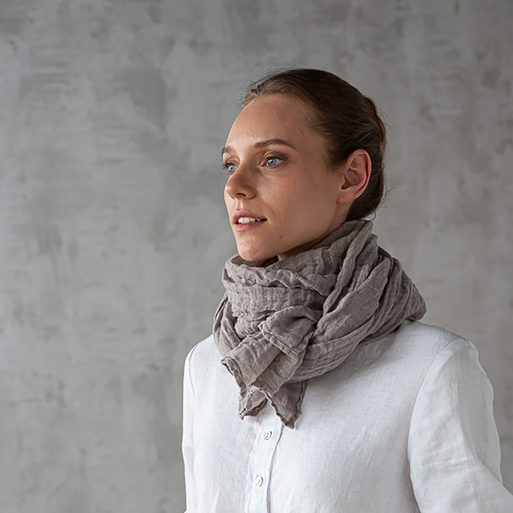 使用100%的亞麻製成,純淨的抓皺感,非常柔軟舒適,材質輕柔適合隨身攜帶。