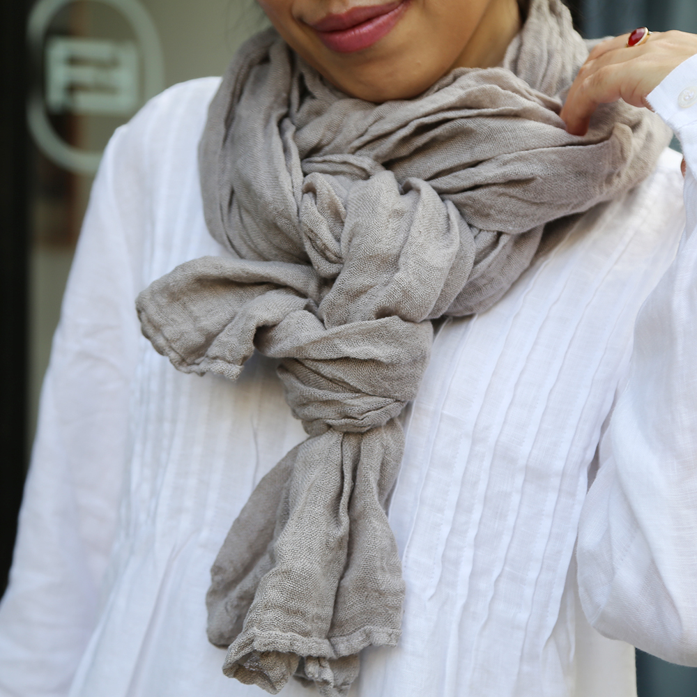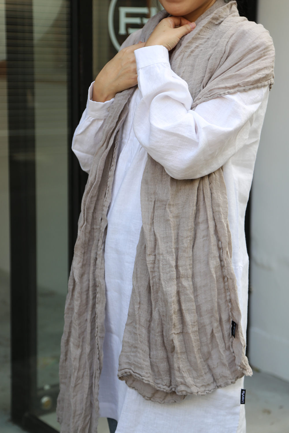 使用100%的亞麻製成,純淨的抓皺感,非常柔軟舒適,材質輕柔適合隨身攜帶
