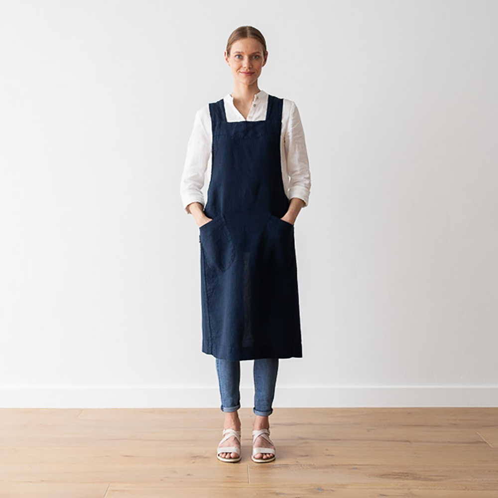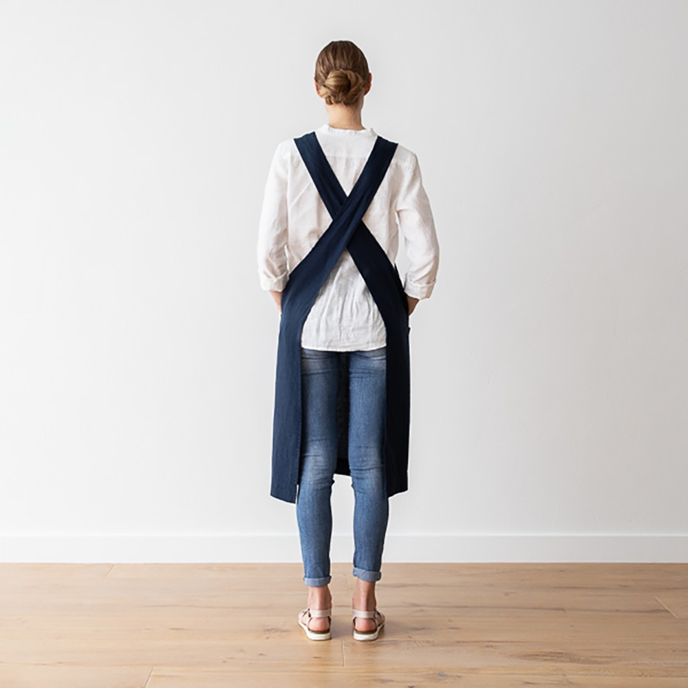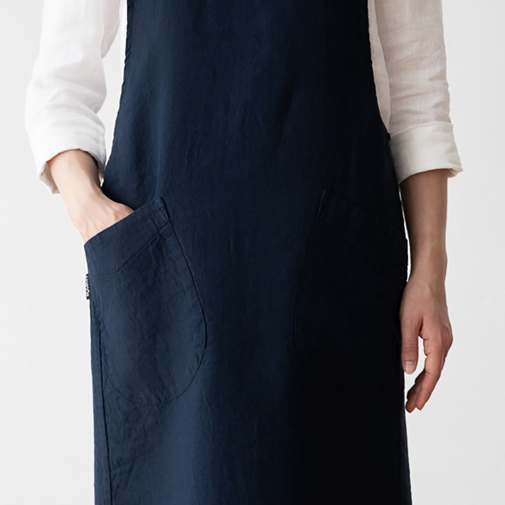 石洗背掛交叉式亞麻圍裙-海軍藍 80x95cm (預購商品)