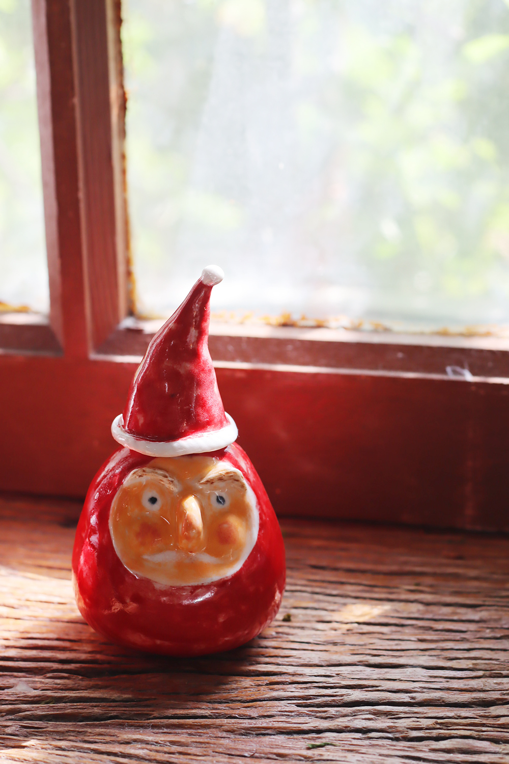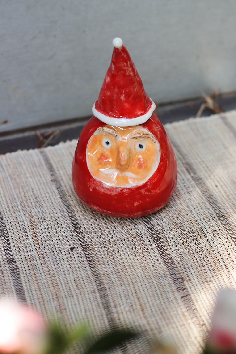 邊幫他們捏製試戴帽子就是聖誕老公公的立體版