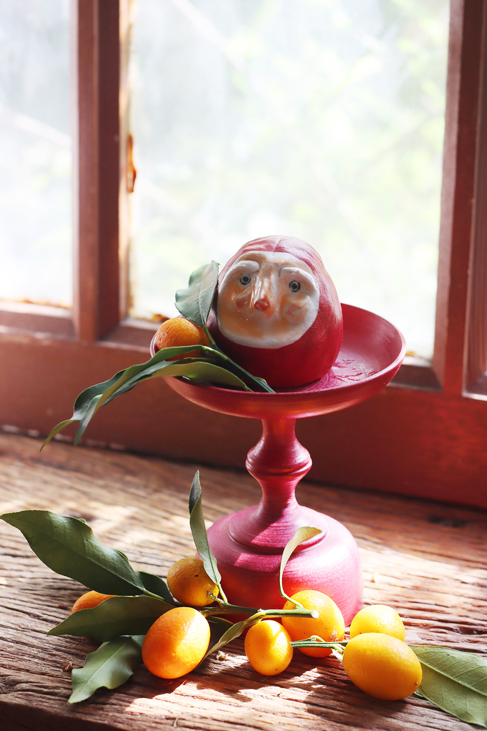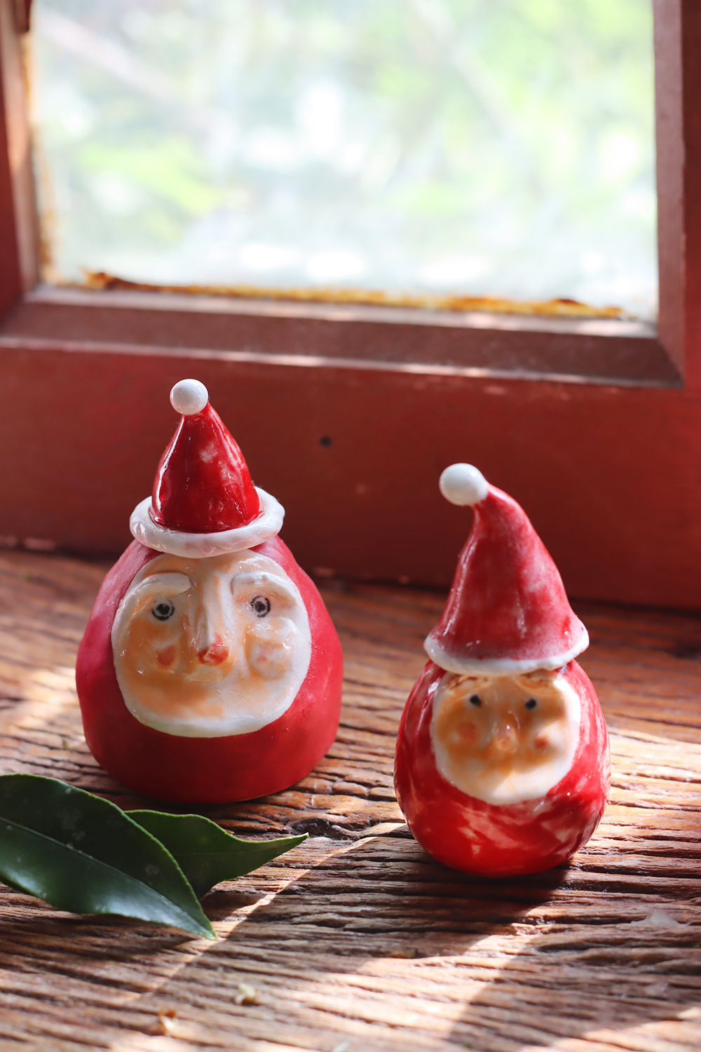 邊幫他們捏製試戴帽子就是聖誕老公公的立體版