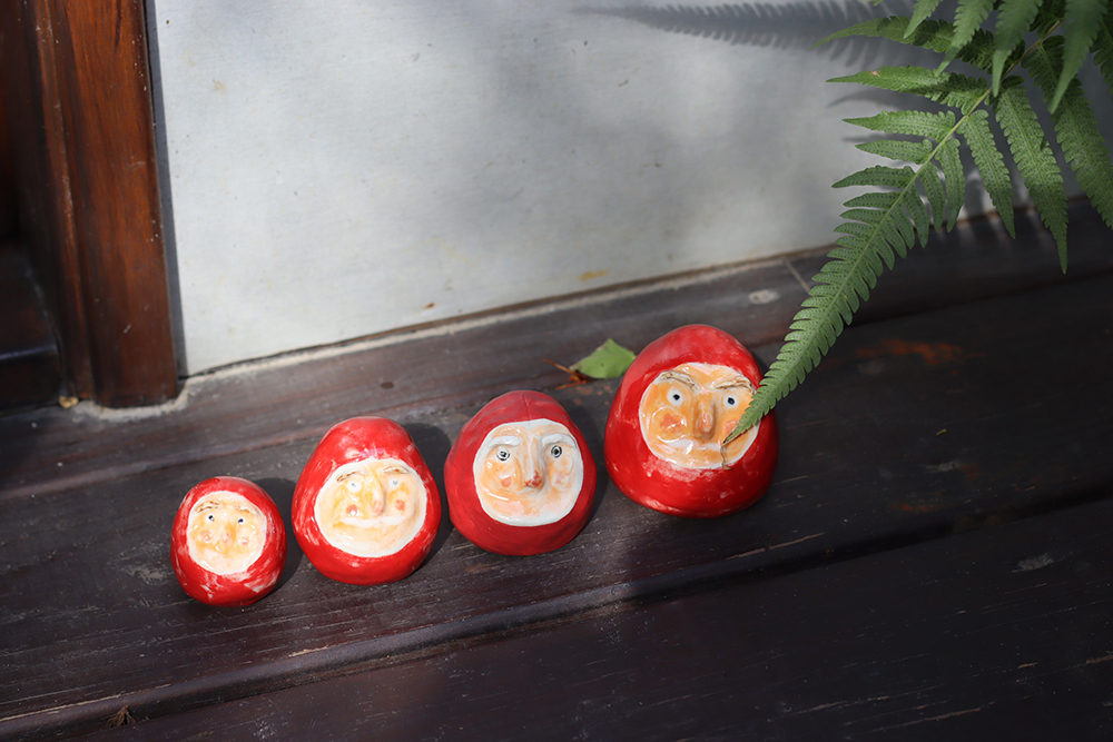 每隻立著的福爺爺不倒翁,都是陶土手捏上釉