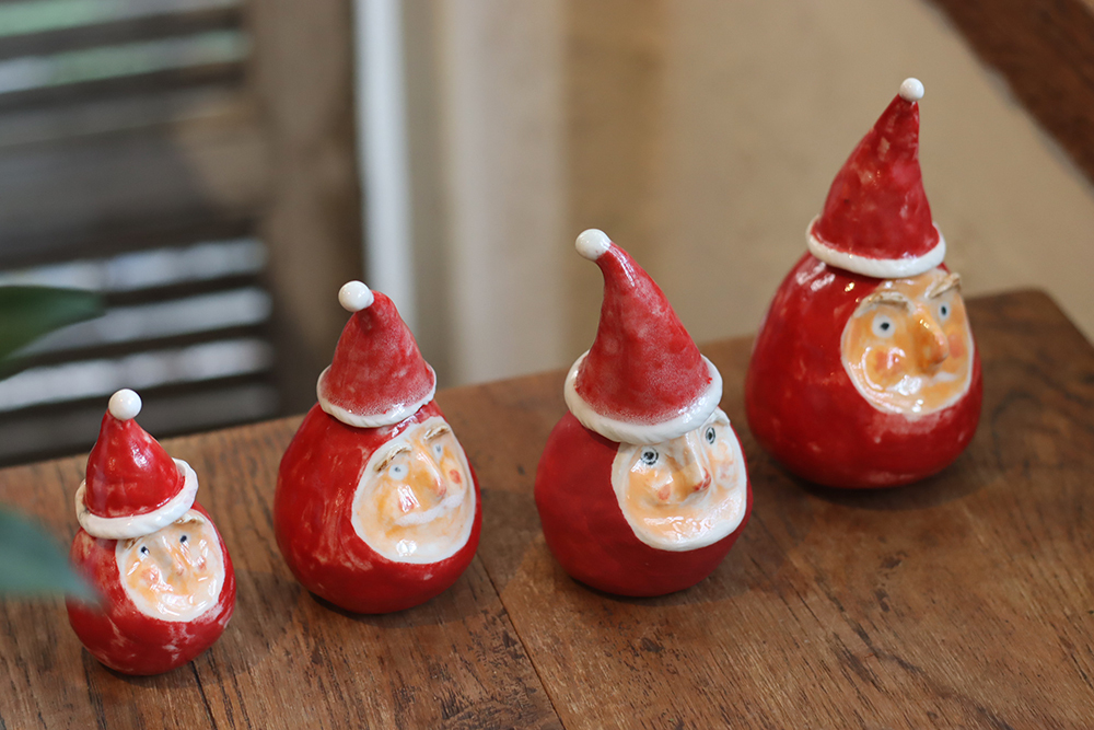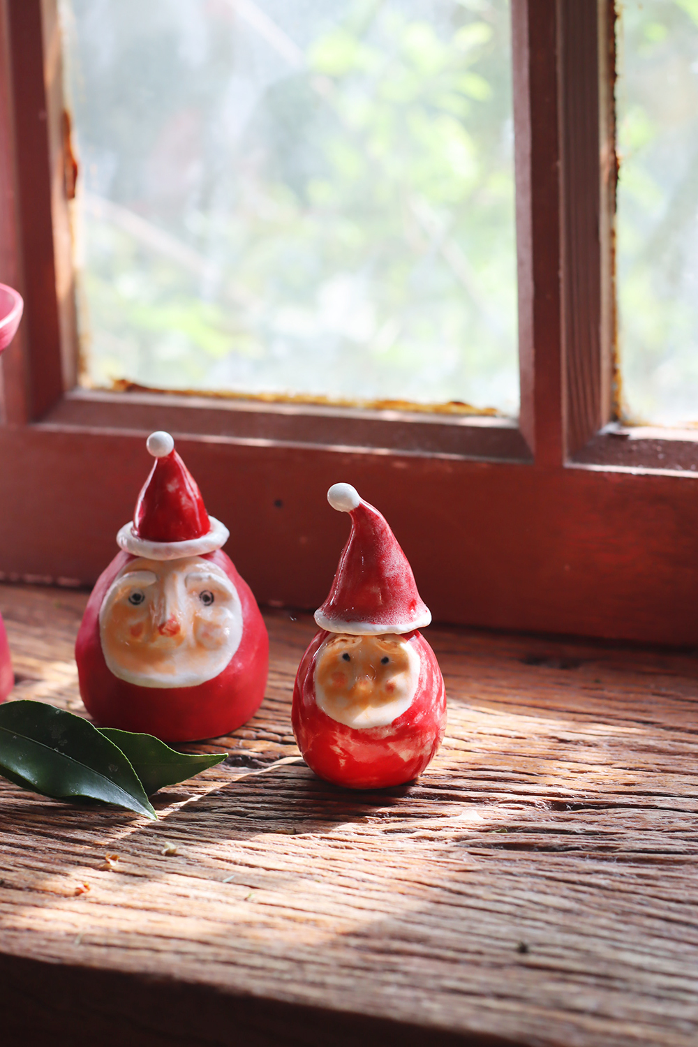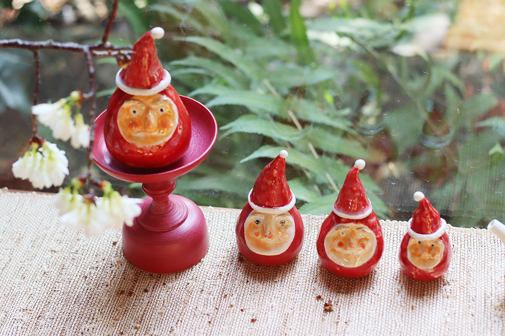 邊幫他們捏製試戴帽子就是聖誕老公公的立體版