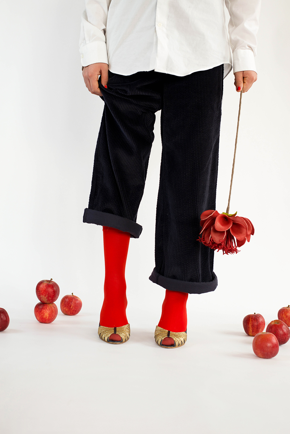 在義大利製布紡紗,全程在法國設計以及法國和葡萄牙生產的每一雙襪子。