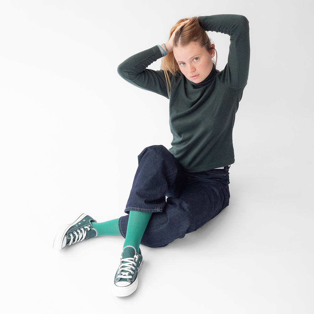 在義大利製布紡紗,全程在法國設計以及法國和葡萄牙生產的每一雙襪子。