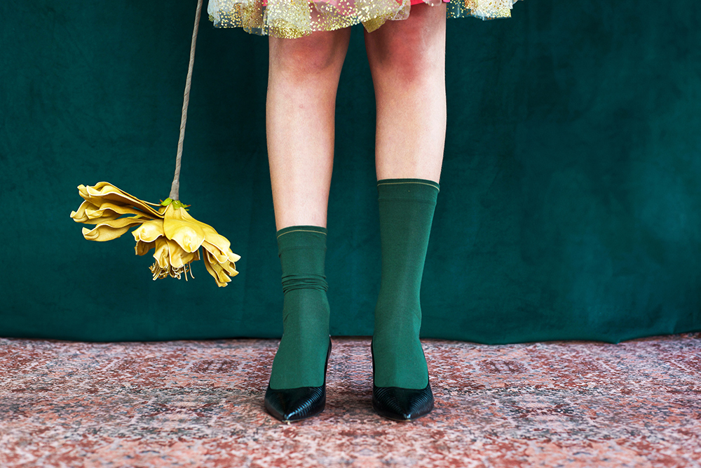在義大利製布紡紗,全程在法國設計以及法國和葡萄牙生產的每一雙襪子。