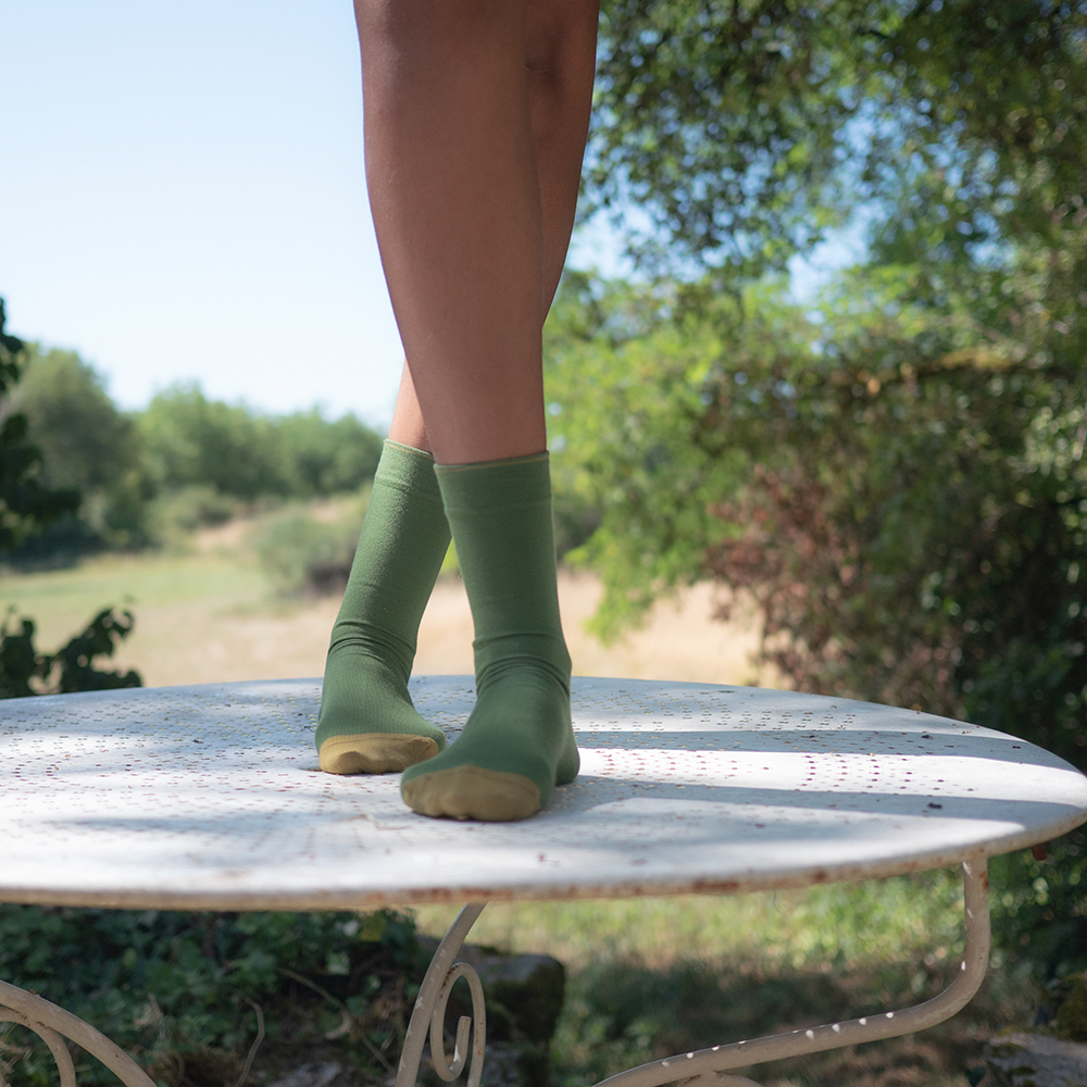 在義大利製布紡紗,全程在法國設計以及法國和葡萄牙生產的每一雙襪子。