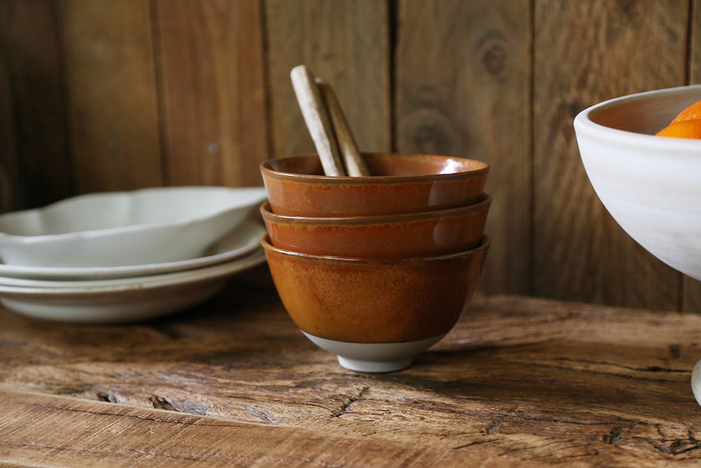 發想來自對喬治敦印象的棕色,碗身帶有楓葉及栗子的渲染,
