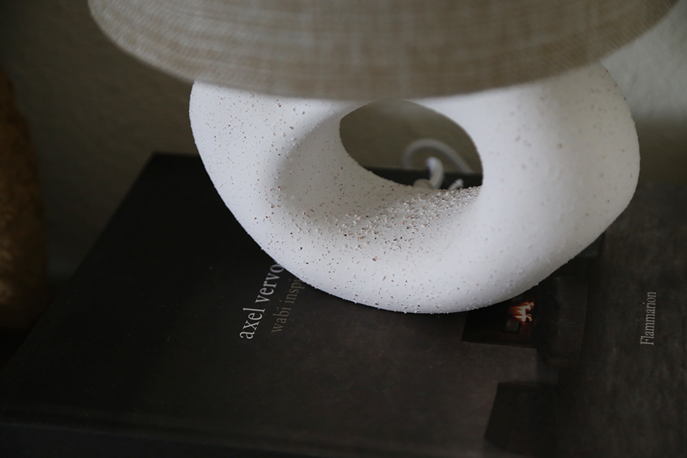 這款陶瓷燈像一件現代藝術作品, 具有白色紋理的砂飾面