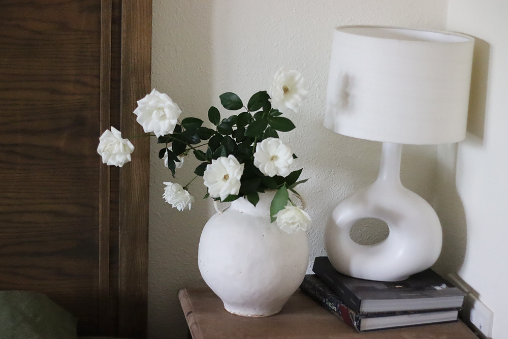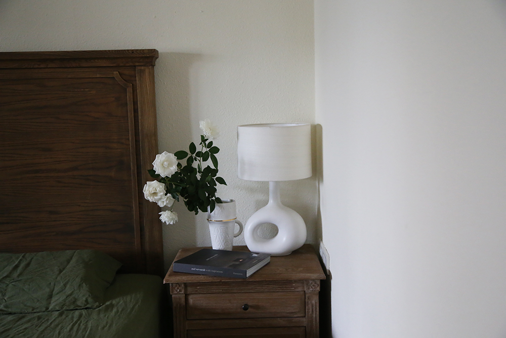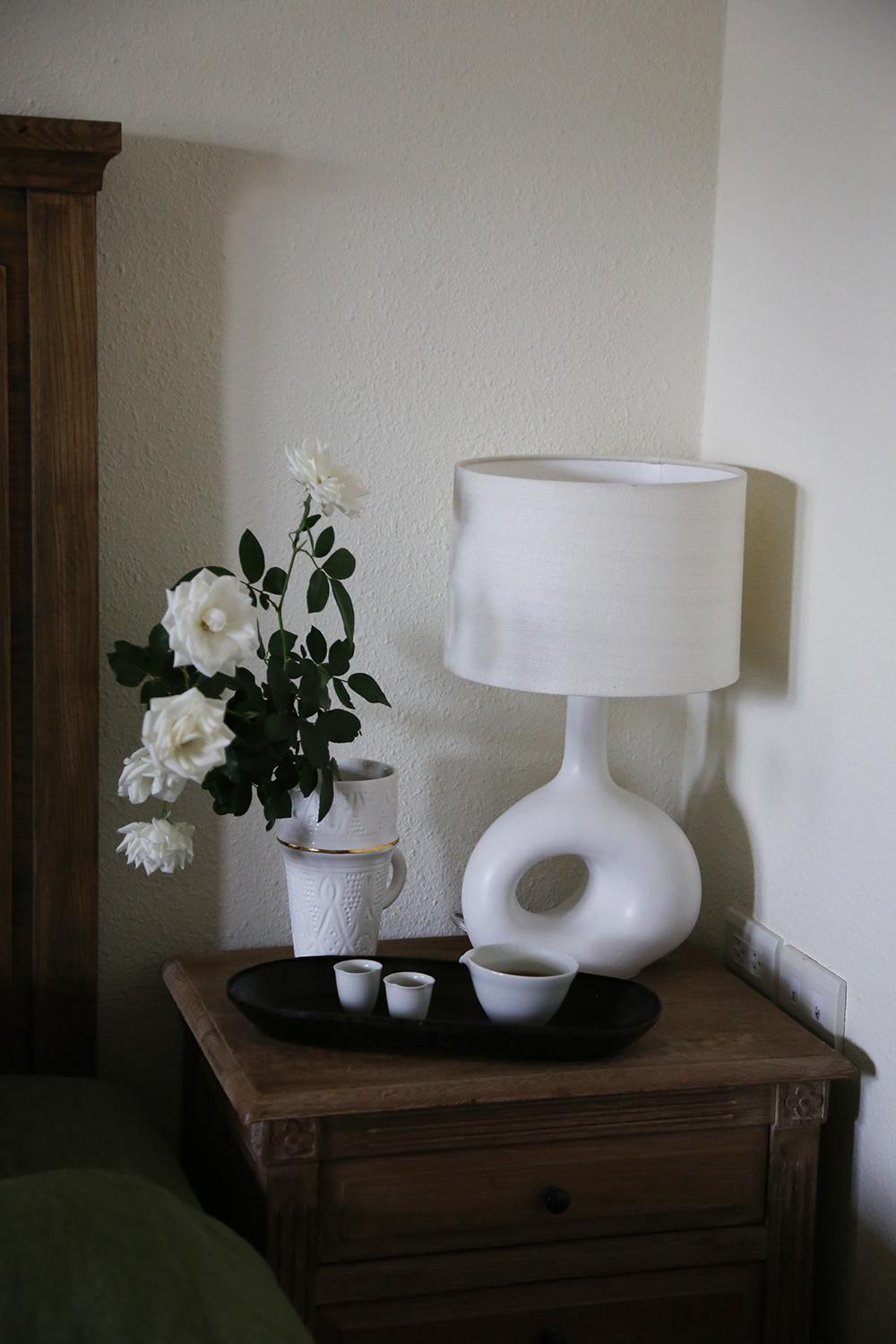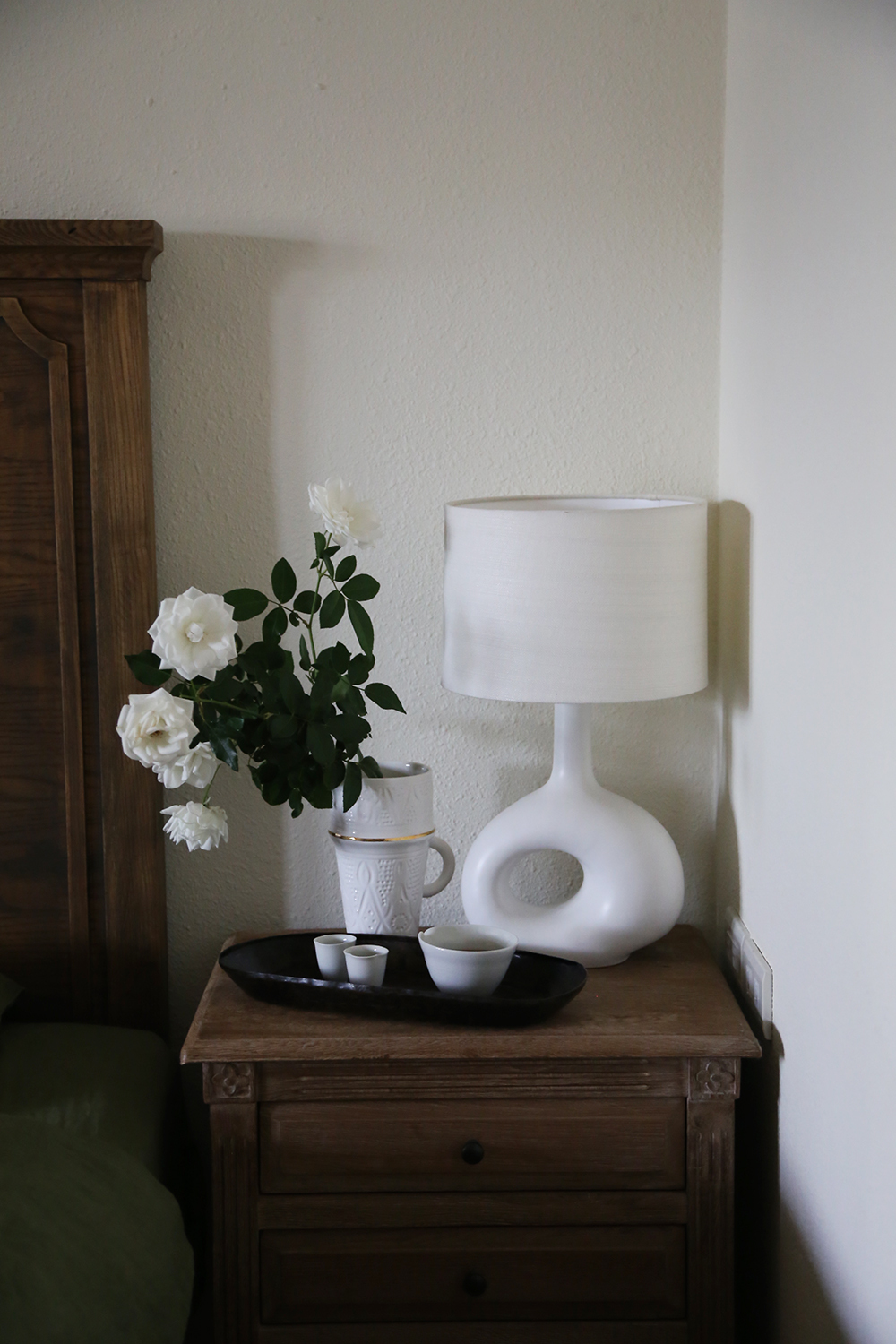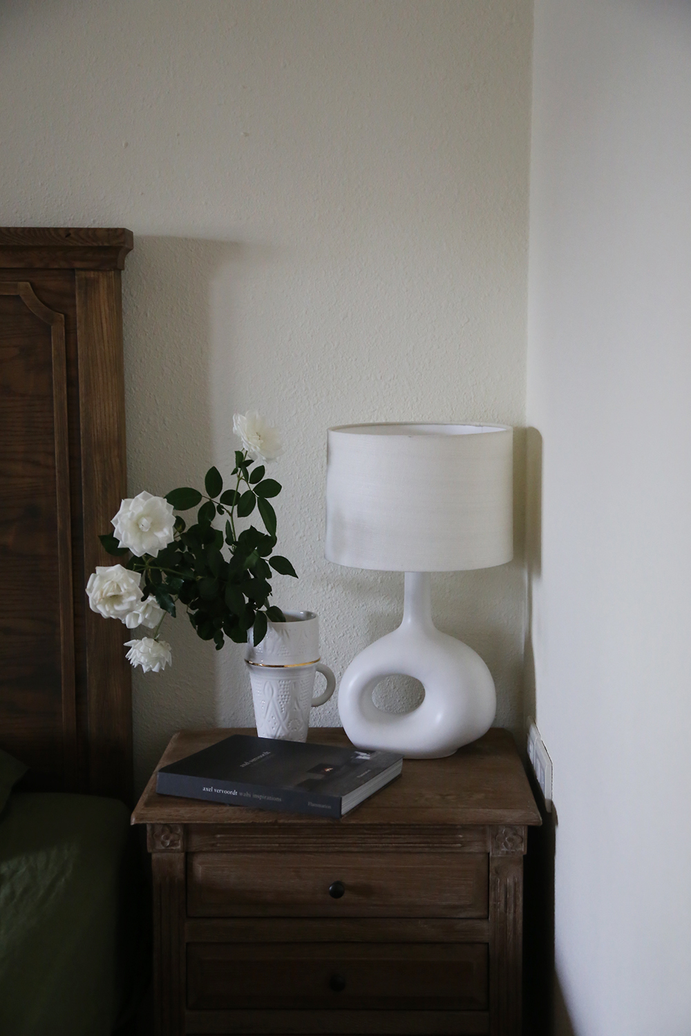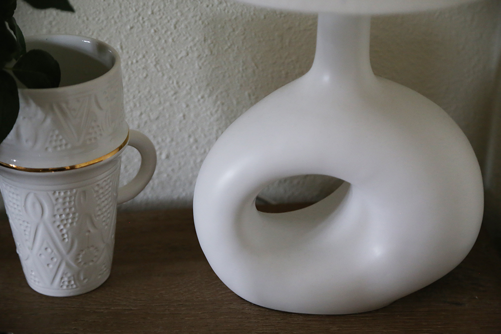 這款陶瓷燈像一件現代藝術作品, 搭配相符合的灰白燈罩,為家裡帶來自然光源