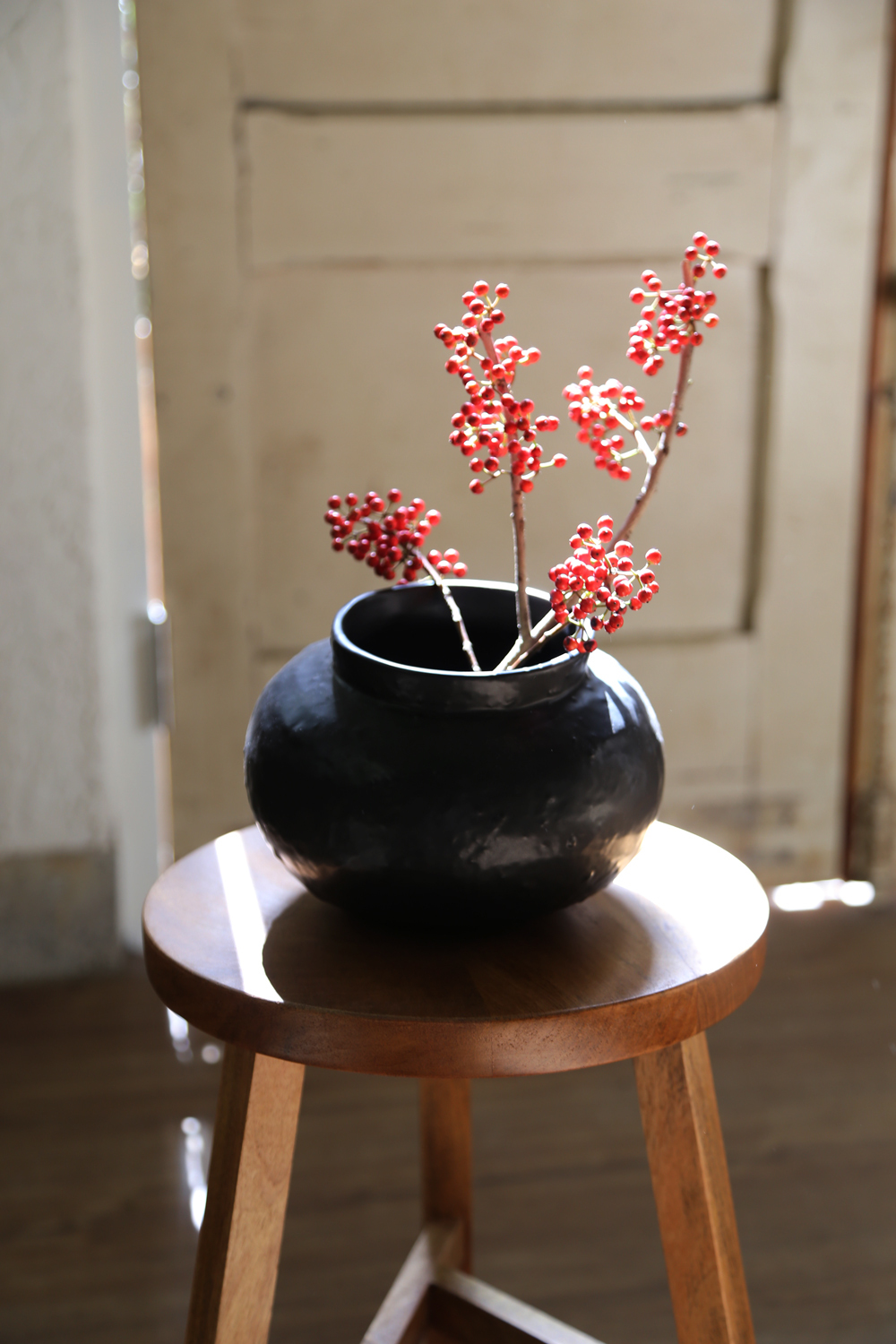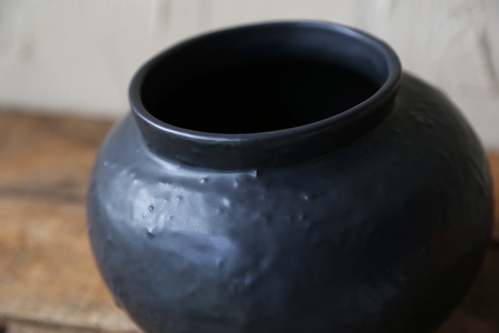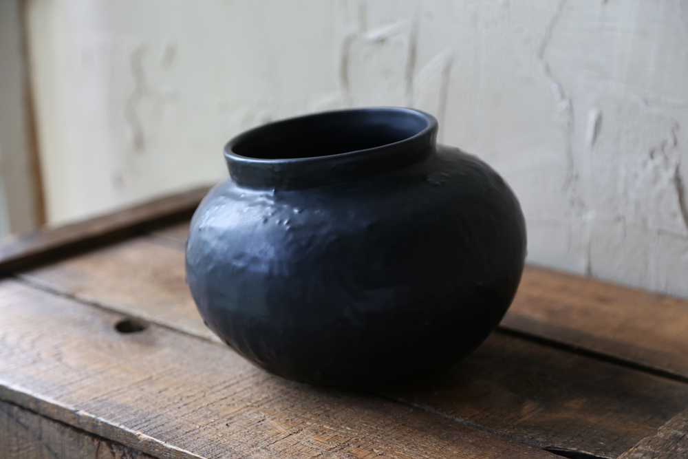 不規則的圓弧開口及壺身特別紋理及黑色飾面。