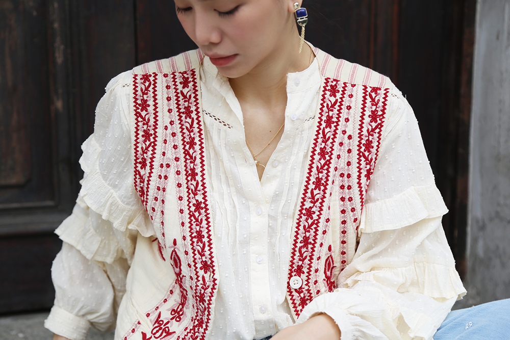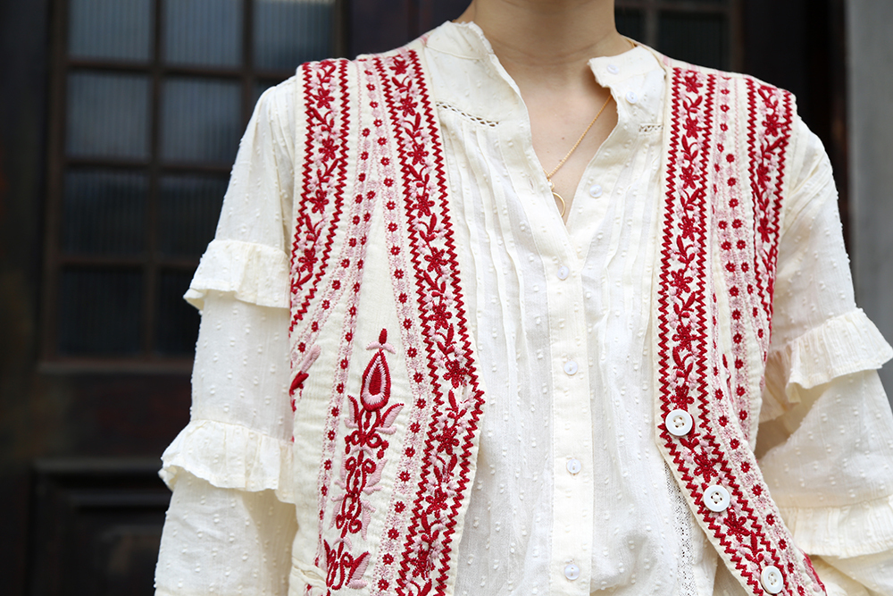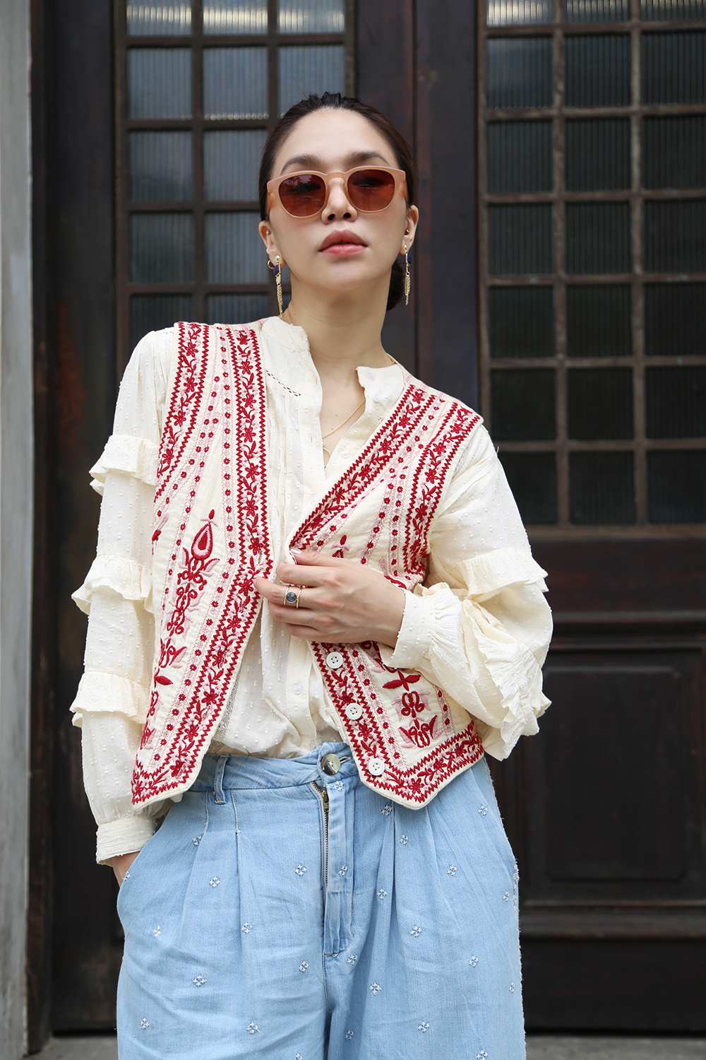 Giada 是本季最暢銷的背心,採用質樸的棉質底布剪裁而成,衣身和邊緣均飾有精緻的雙色刺繡設計。