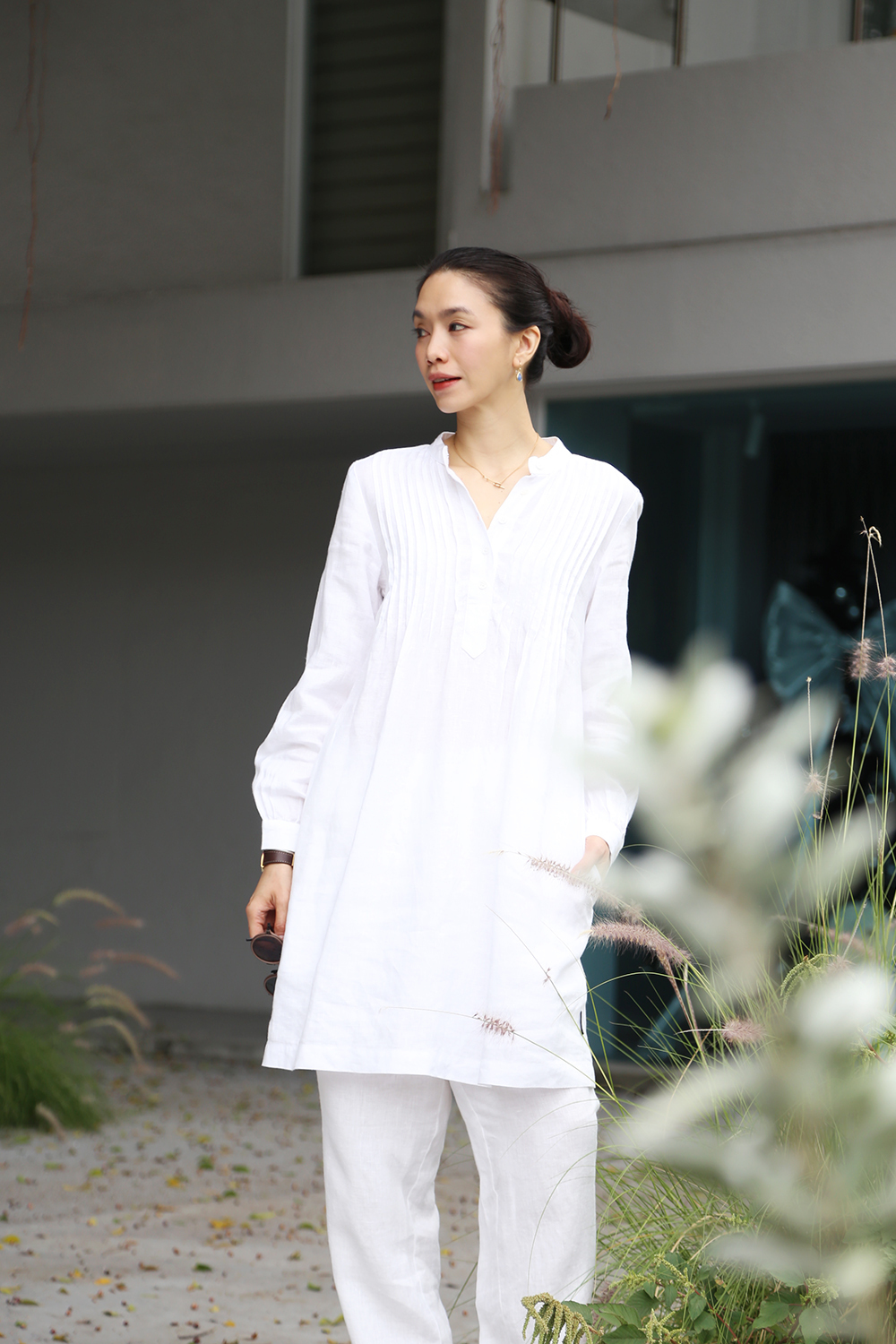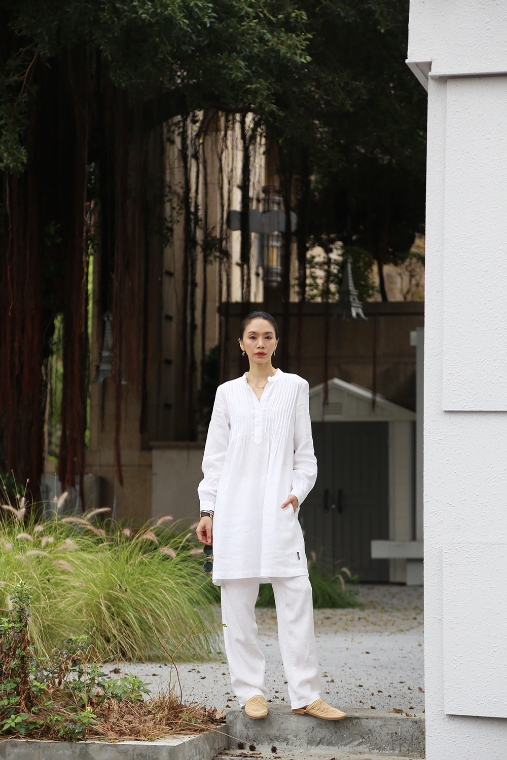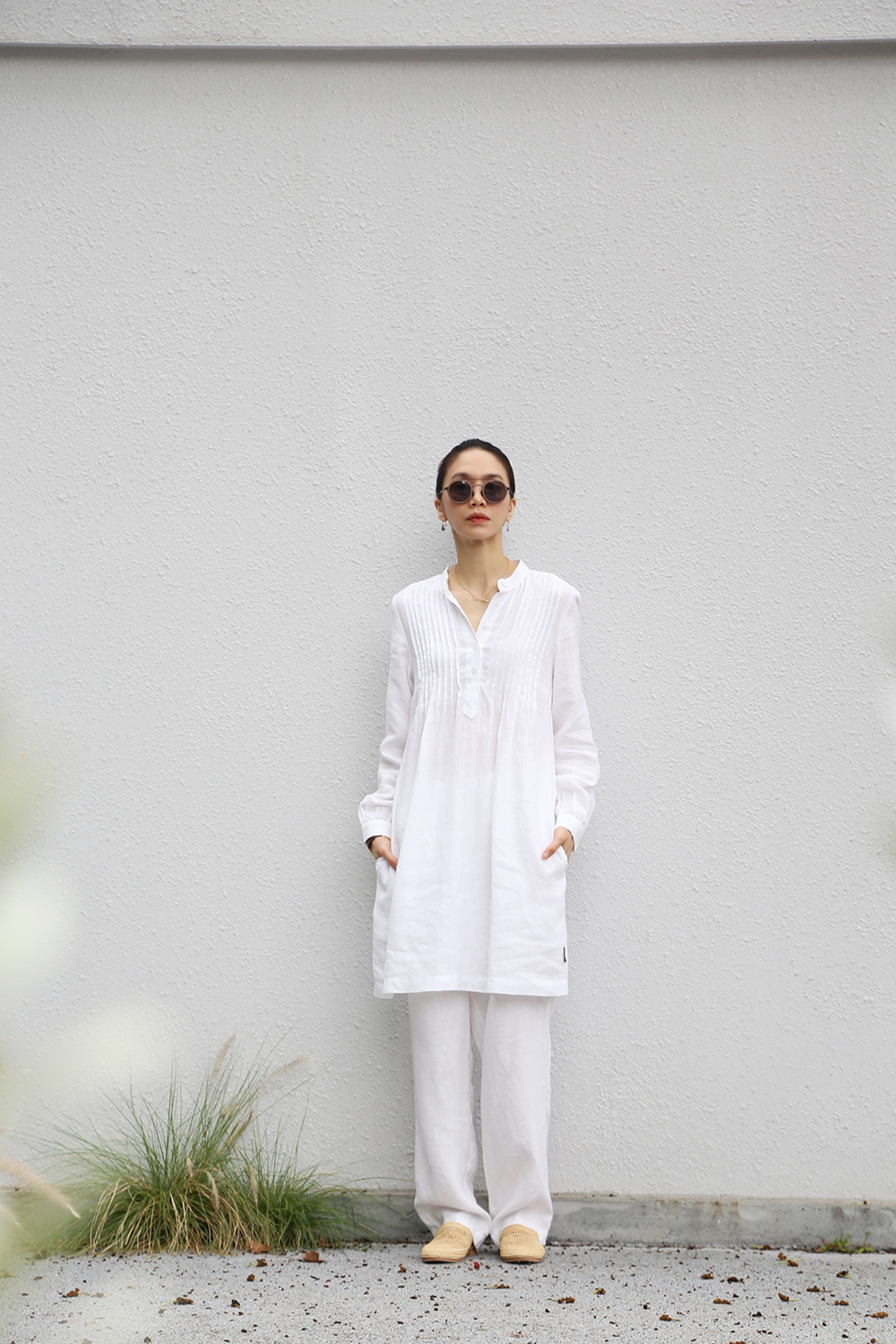 這款長版衫採用時尚的襯衫裙款式,凸顯優雅氣質