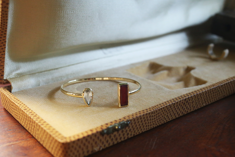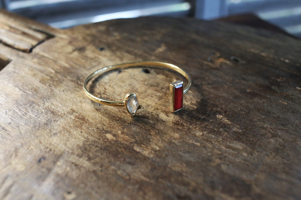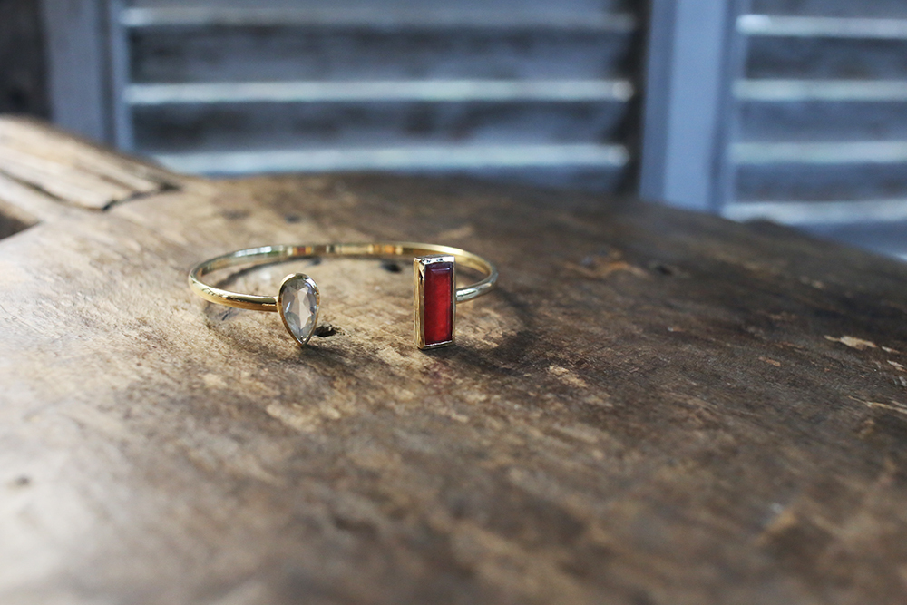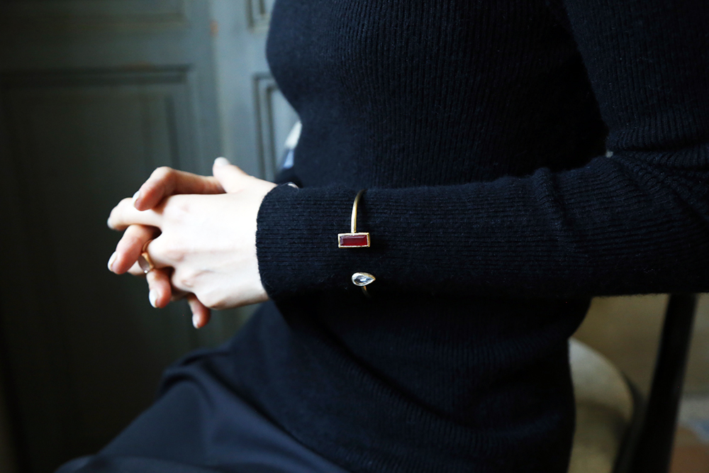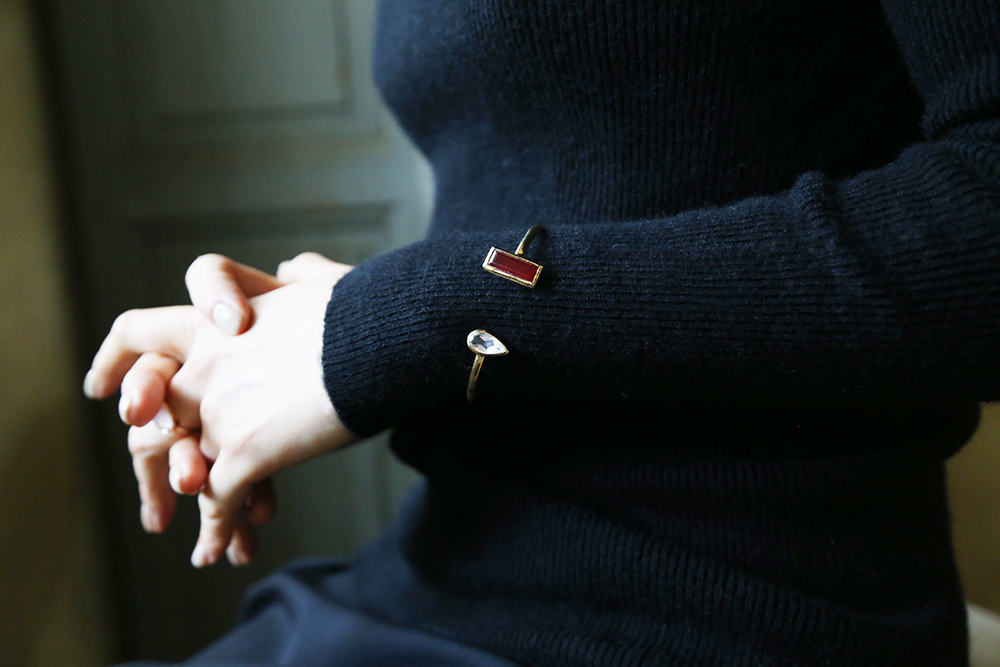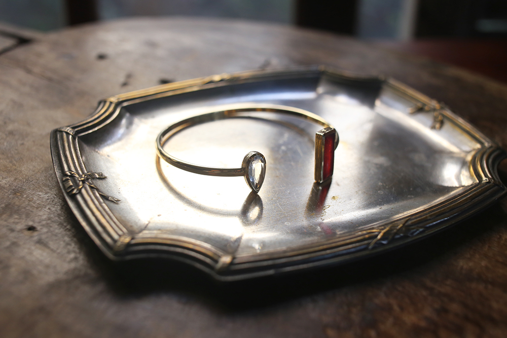 以優雅,感性和細緻,結合古典與現代,以黃銅,天然月光石、青金石、珍珠母貝、翡翠、碧璽、石英、黃玉、瑪瑙、葡萄石、東陵石等寶石的結合