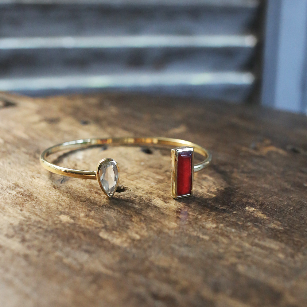 材質:紅色瑪瑙、水晶、黃銅鍍24k金