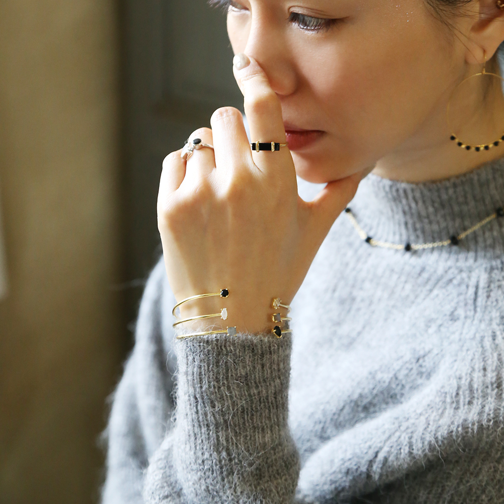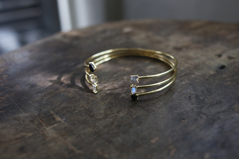 材質:黑瑪瑙、石英、拉長石、黃銅鍍24k金